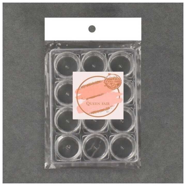 Queen fair Органайзер для декора, 12 баночек, 5 гр, см,12 × 9,5 см, цвет прозрачный