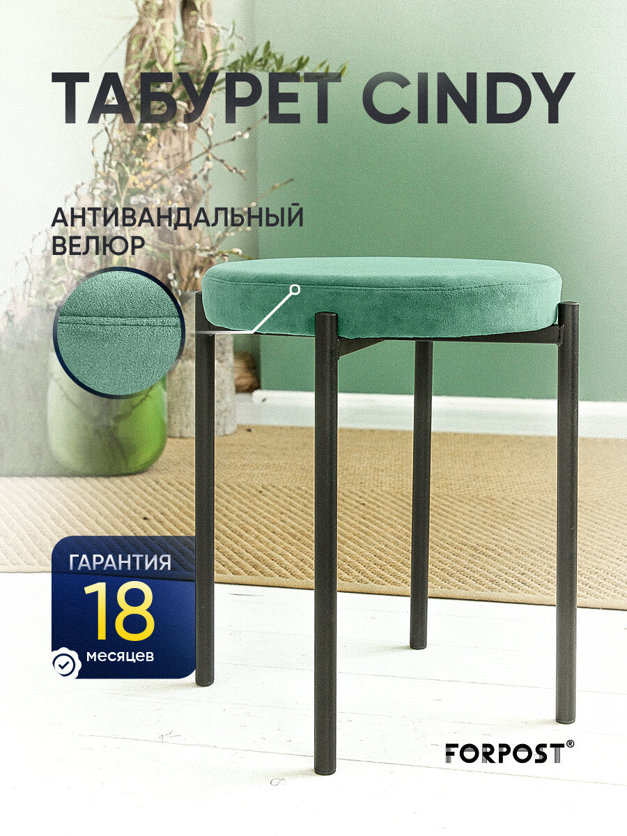 Табурет для кухни Cindy изумрудный, черный каркас