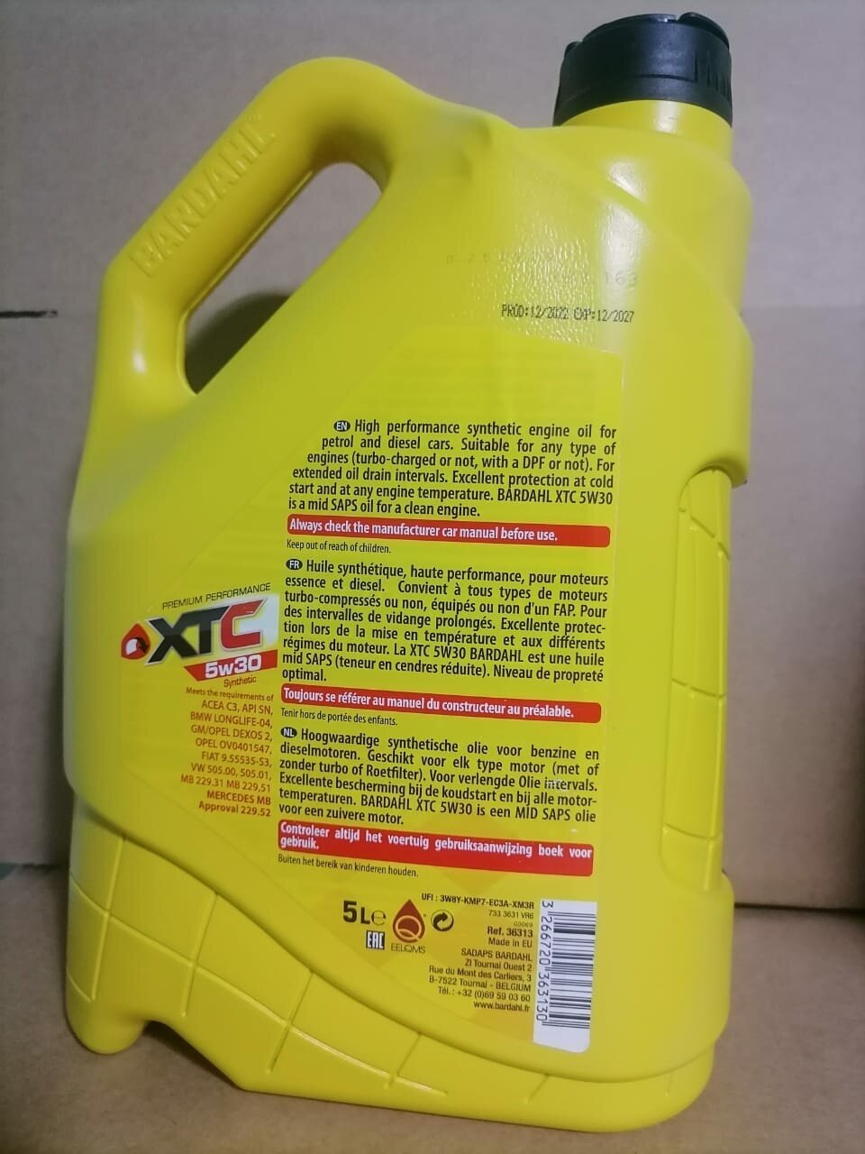 Bardahl 5W30 Xtc Sn 20L (Синт. Моторное Масло)_Acea C3|Api Sn|Bmw Longlife-04|Mb 229.52 (Approval)|Gm/Opel Dexos 2|Vw 502.00/...