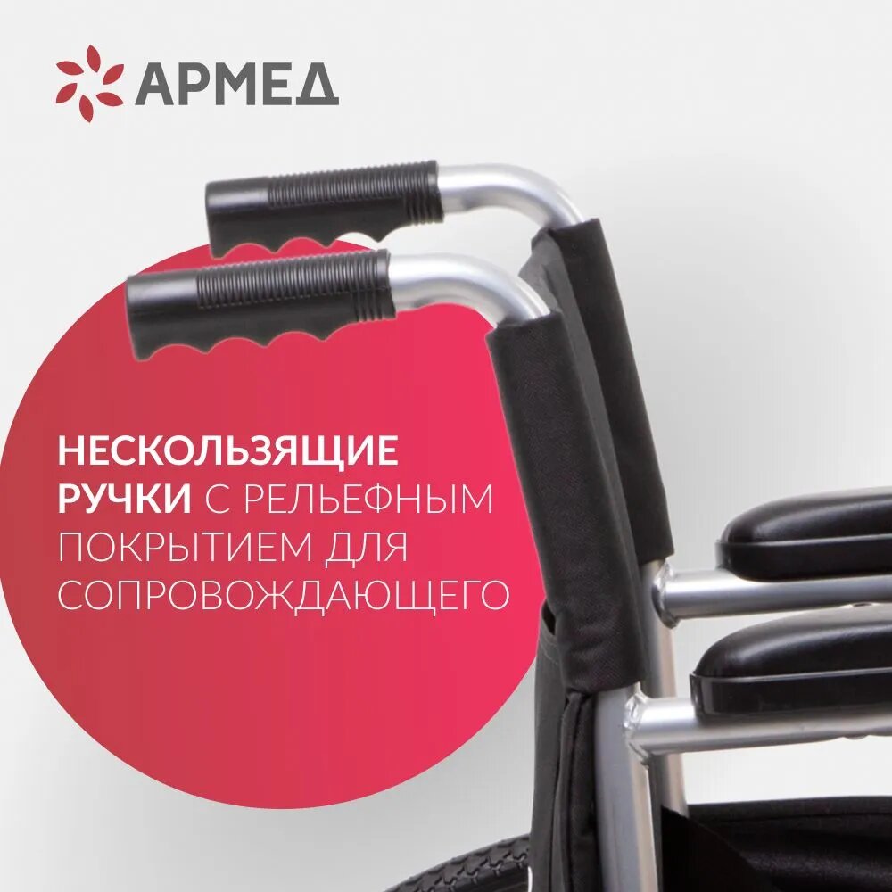 СохранитьКресло-коляска инвалидная складная Армед H 007 (ширина сиденья 46 см, пневмо колеса, для взрослых, складная, прогулочная, механическая, медицинская) интересное: