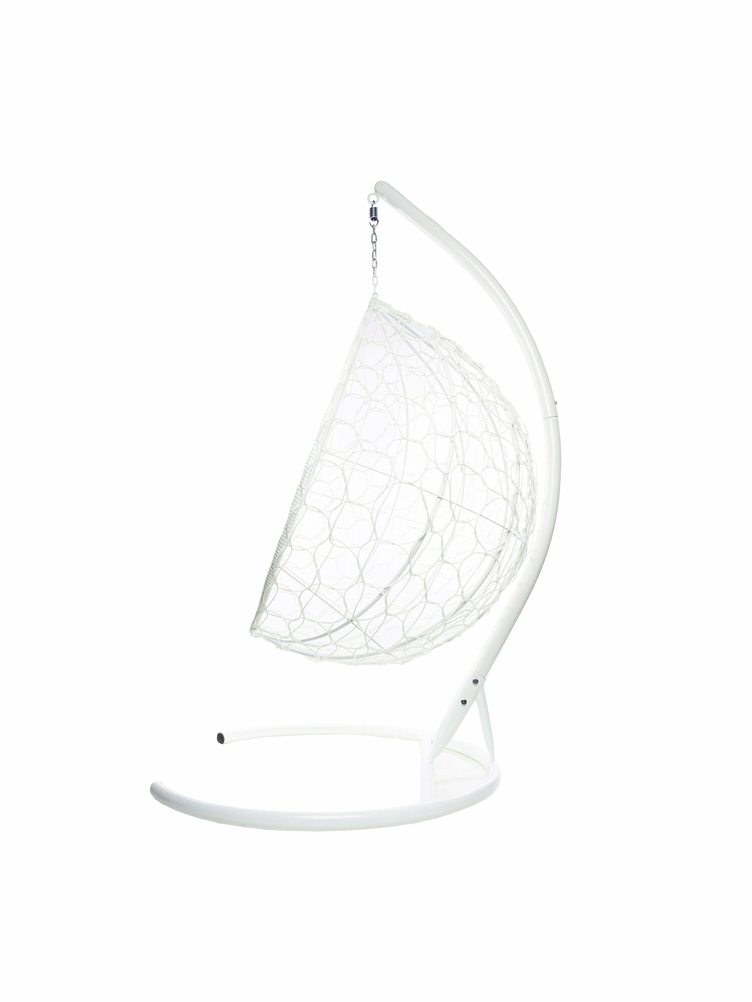 Подвесное Кресло-Капля с ротангом Белое с бежевый подушккой