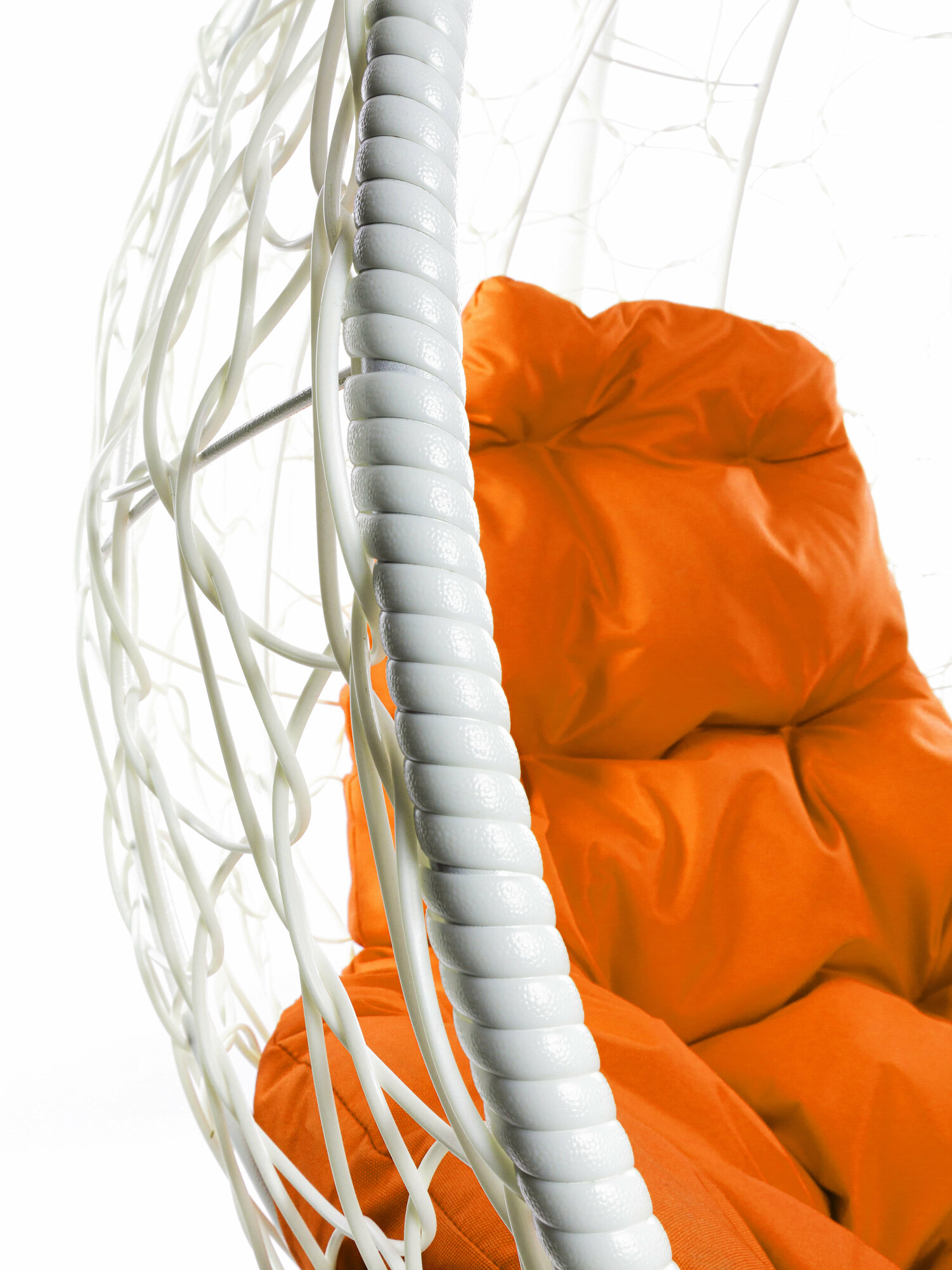 Подвесное кресло капля ротанг белое (без стойки), оранжевая подушка