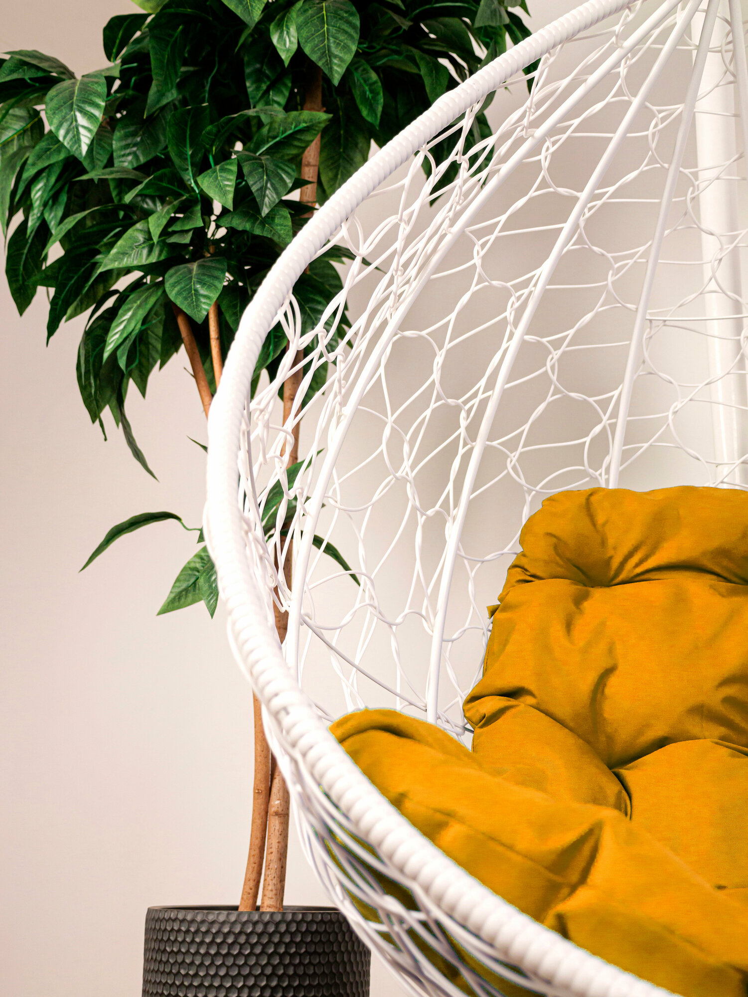 Кресло кокон W-GROUP Капля с ротангом, 98х186 см, до 120 кг белый/желтый