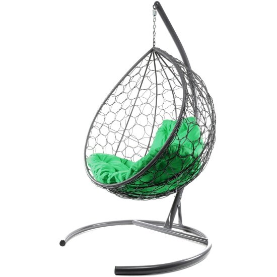 Подвесное кресло капля ротанг серое (без стойки), зелёная подушка