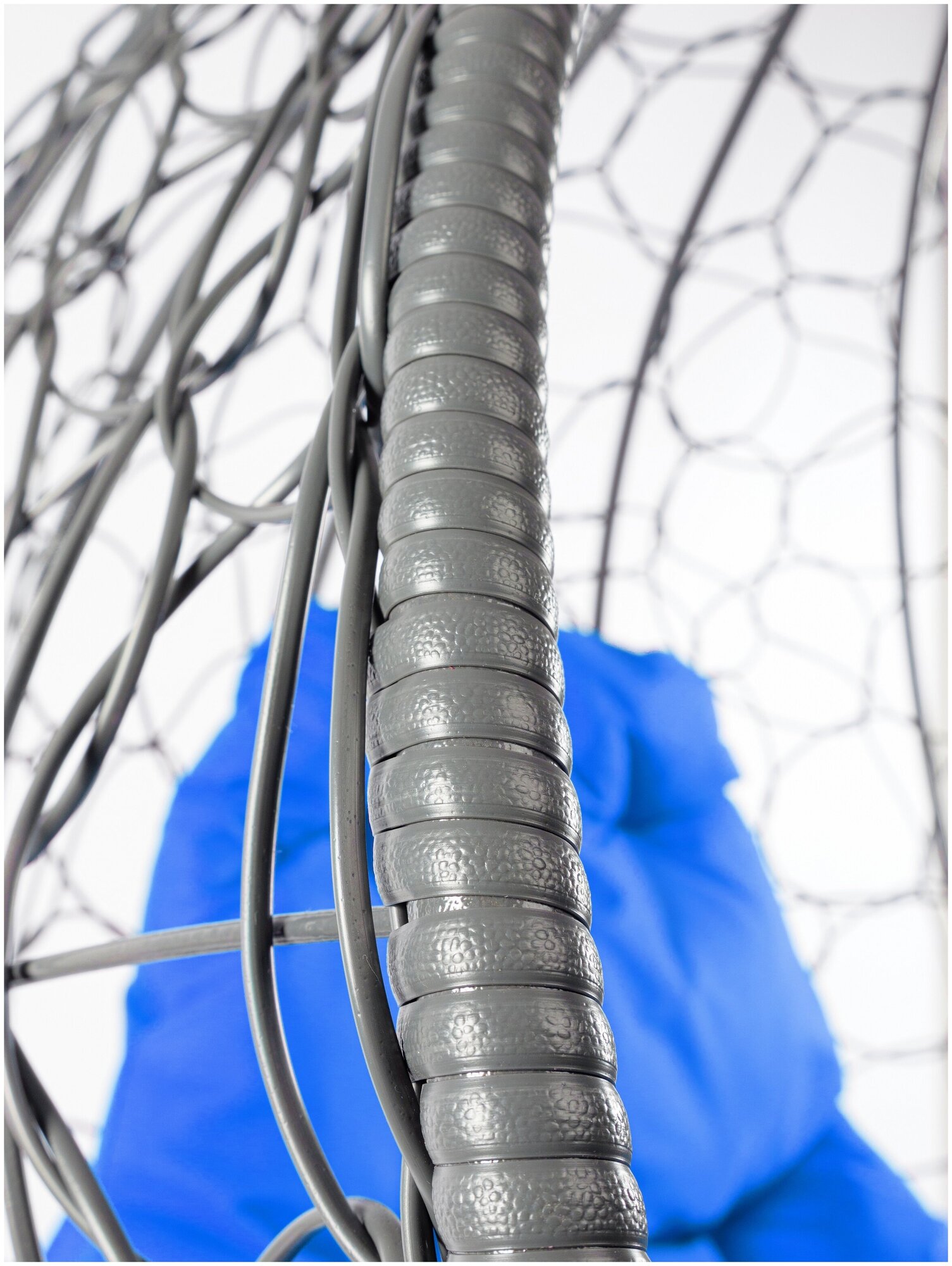 Подвесное кресло капля ротанг серое (без стойки), синяя подушка