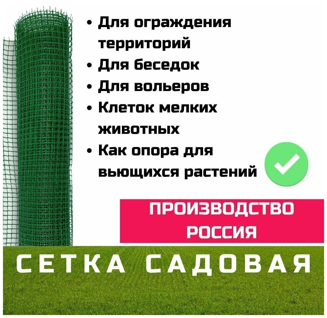 Сетка садовая пластмасса, ячейка 15 х 15 мм, квадратная, 100х2000 см, зеленая, Зеленый луг Удачная