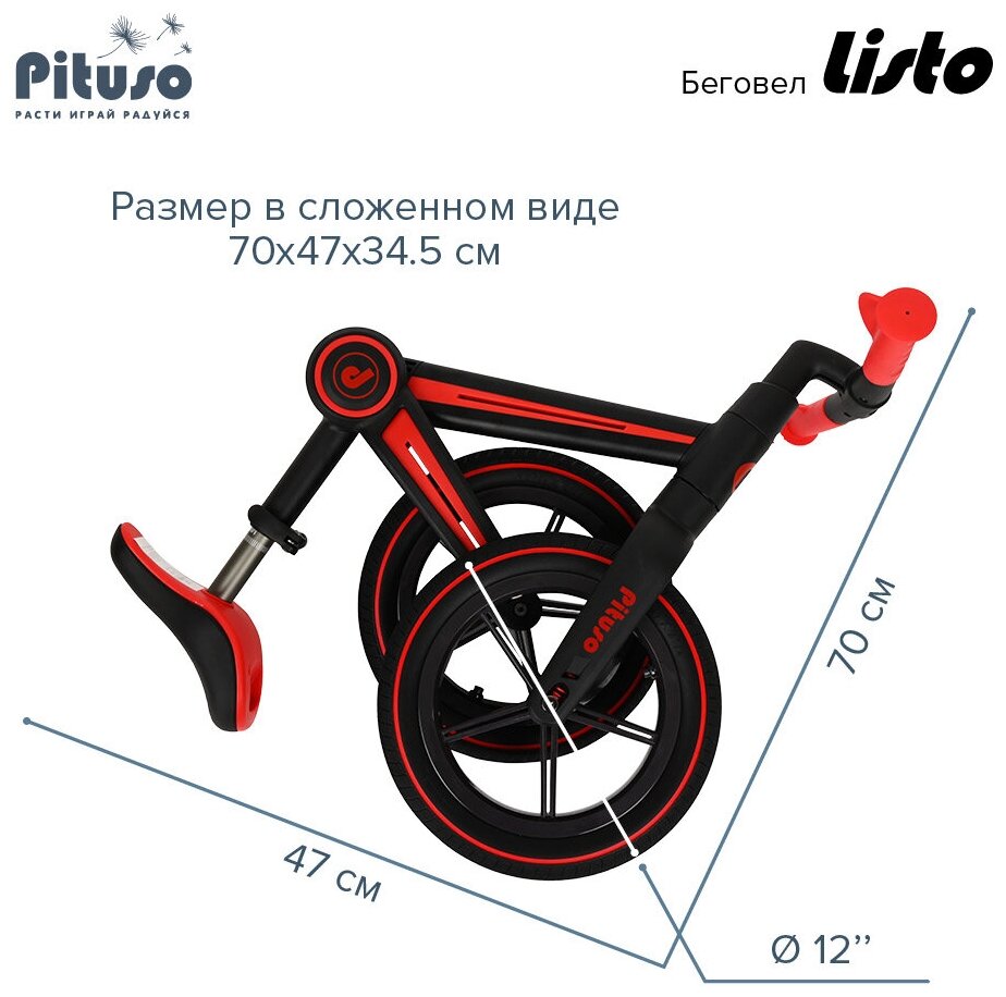 Купить Беговел Pituso Listo колеса EVA 12", складная рама Red/Красный
