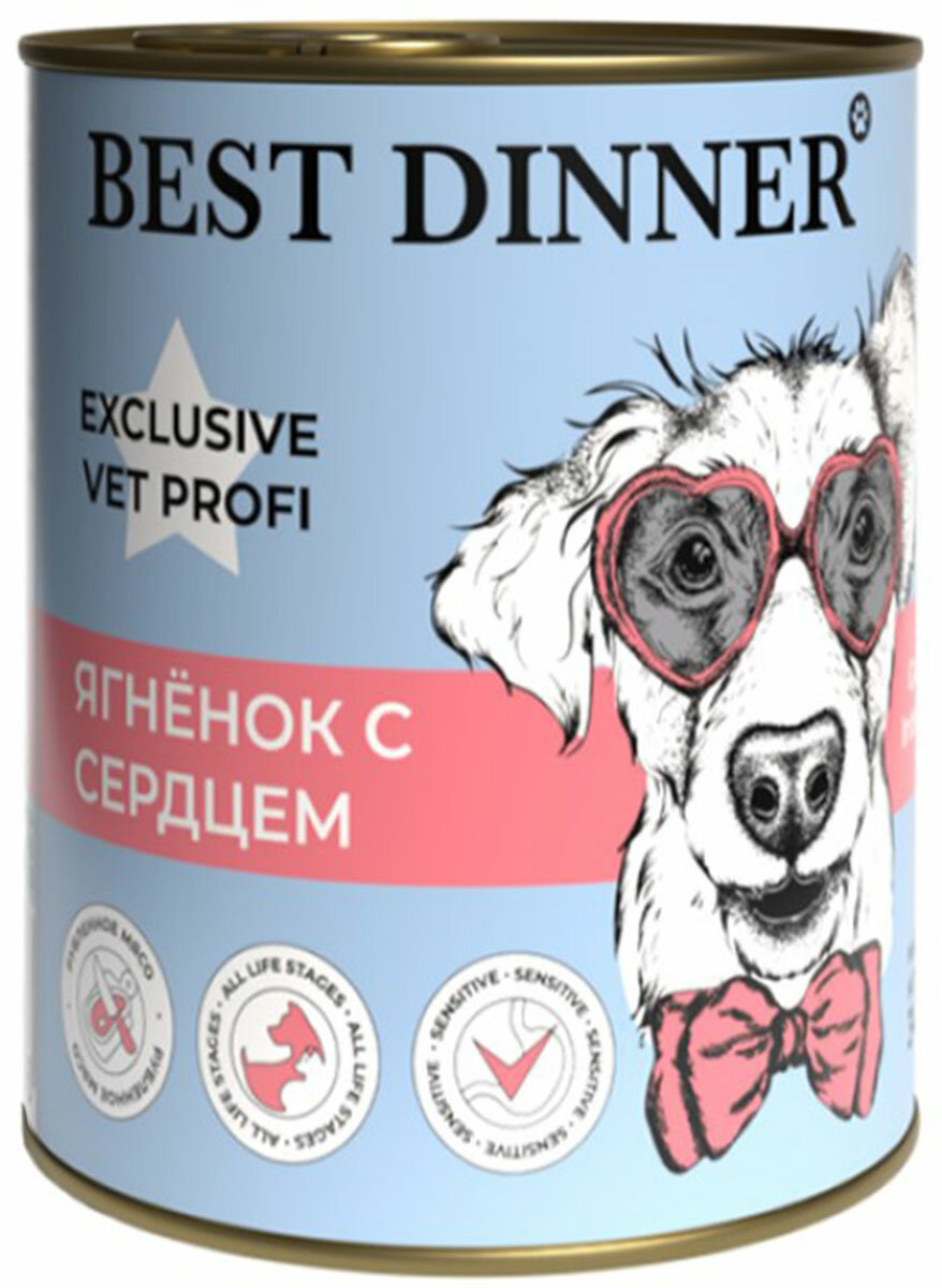 Влажный консервированный корм Бест Диннер Best Dinner для собак Exclusive Gastro Intestinal, ягненок, сердце, 340 гр. По 12 шт.