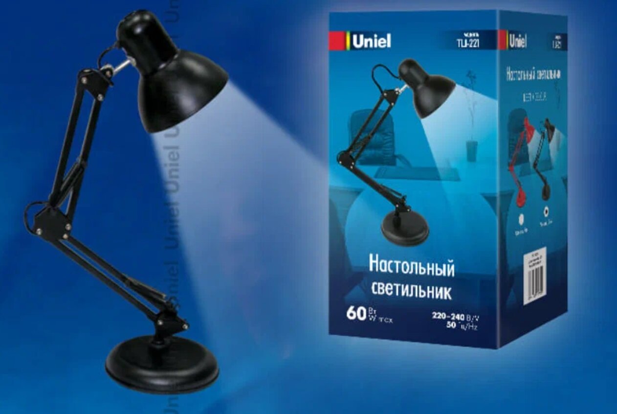 Лампа офисная Uniel TLI-221 Black, E27, 60 Вт, черный