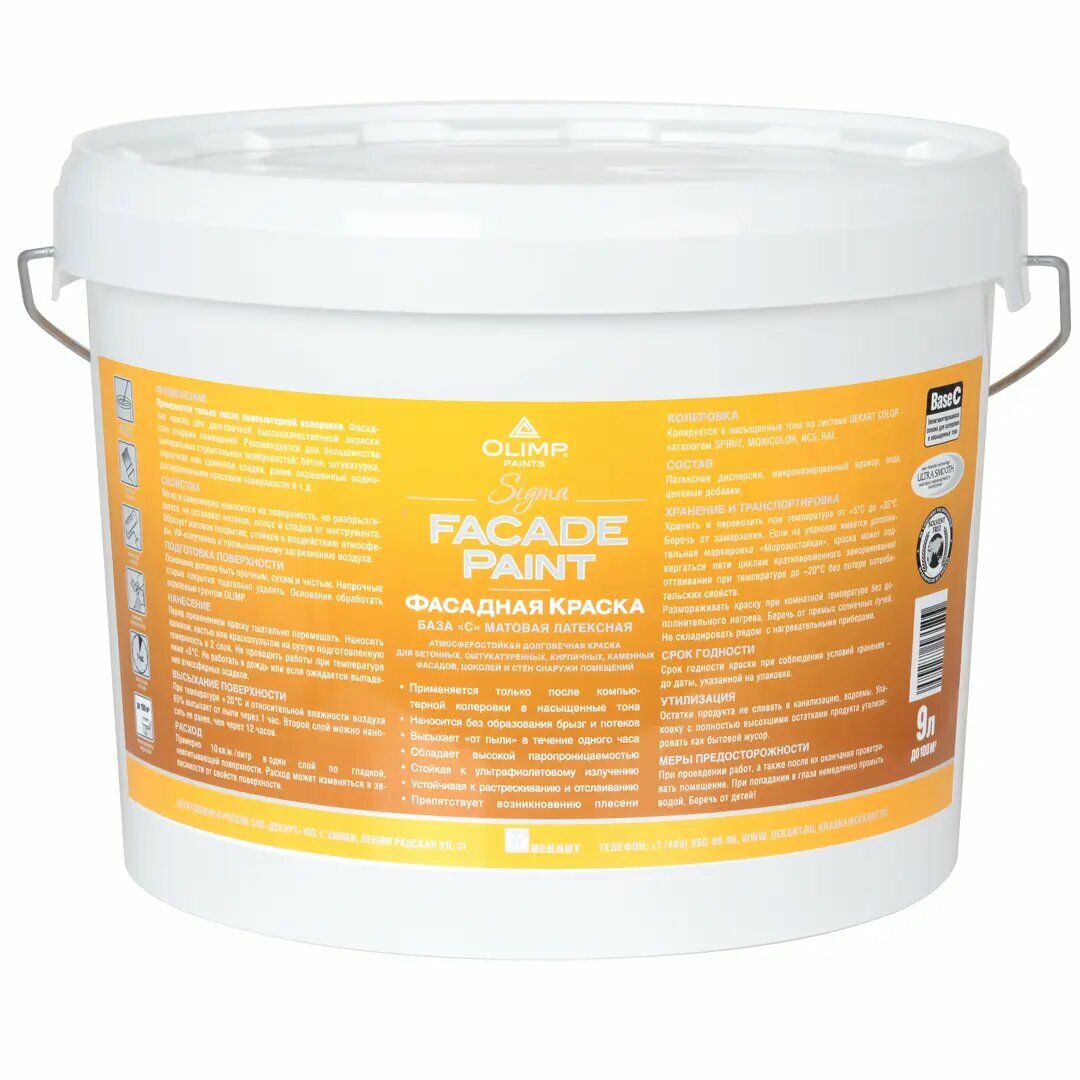 Краска фасадная OLIMP Сигма матовая база C 9 л