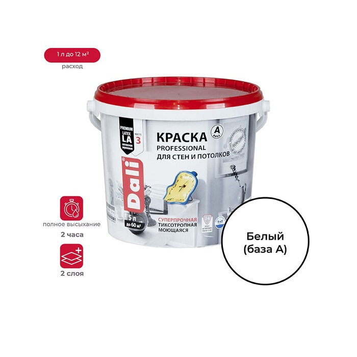 Краска для стен и потолков Dali Professional белая, глубокоматовая (5л), А (белая и под колеровку)