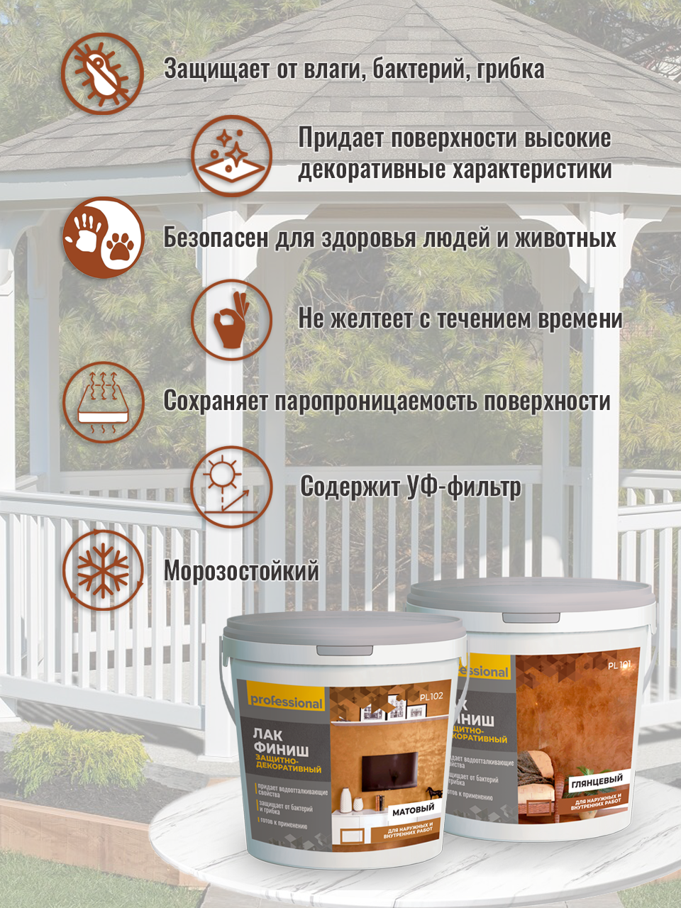 Лак глянцевый защитно-декоративный для нар. и вн. работ PL101 (1кг) ТМ "Professional"