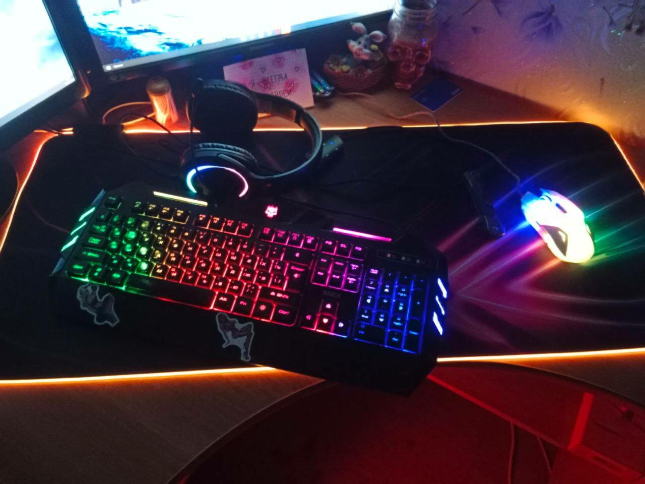| Отзыв: | Хорошая площадь покрытия и отменная точность мыши. Из забавных плюшек – динамичная настраиваемая подсветка. Особенно прикольно играть с нею в темное время суток. Я настроил так, чтобы когда у меня в игре уровень здоровья падает до критичного, она загоралась сначала оранжевым, а потом красным. Выглядит крипово)) Клавиатуру тоже удобно располагать на нем. |