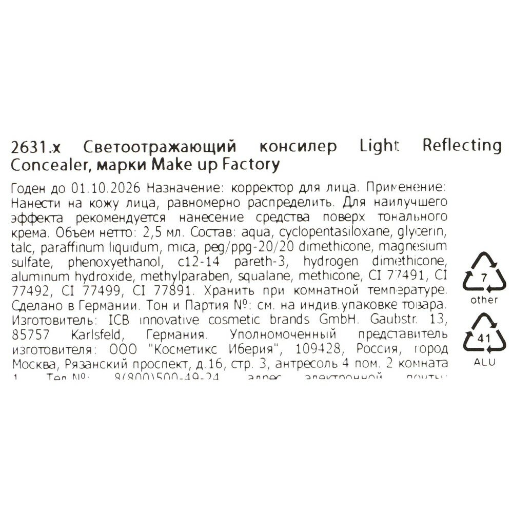 Make up Factory Светлоотражающий консилер Light Rafliecting Concealer, тон 2 кремовый