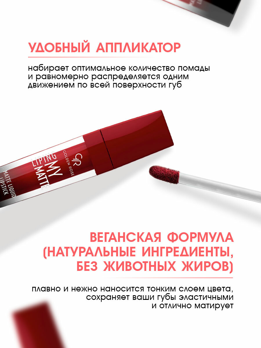 Помада для губ, серии LIPING MY MATTE Matte Liquid Lipstick ,торговая марка "Golden Rose" , тон 01