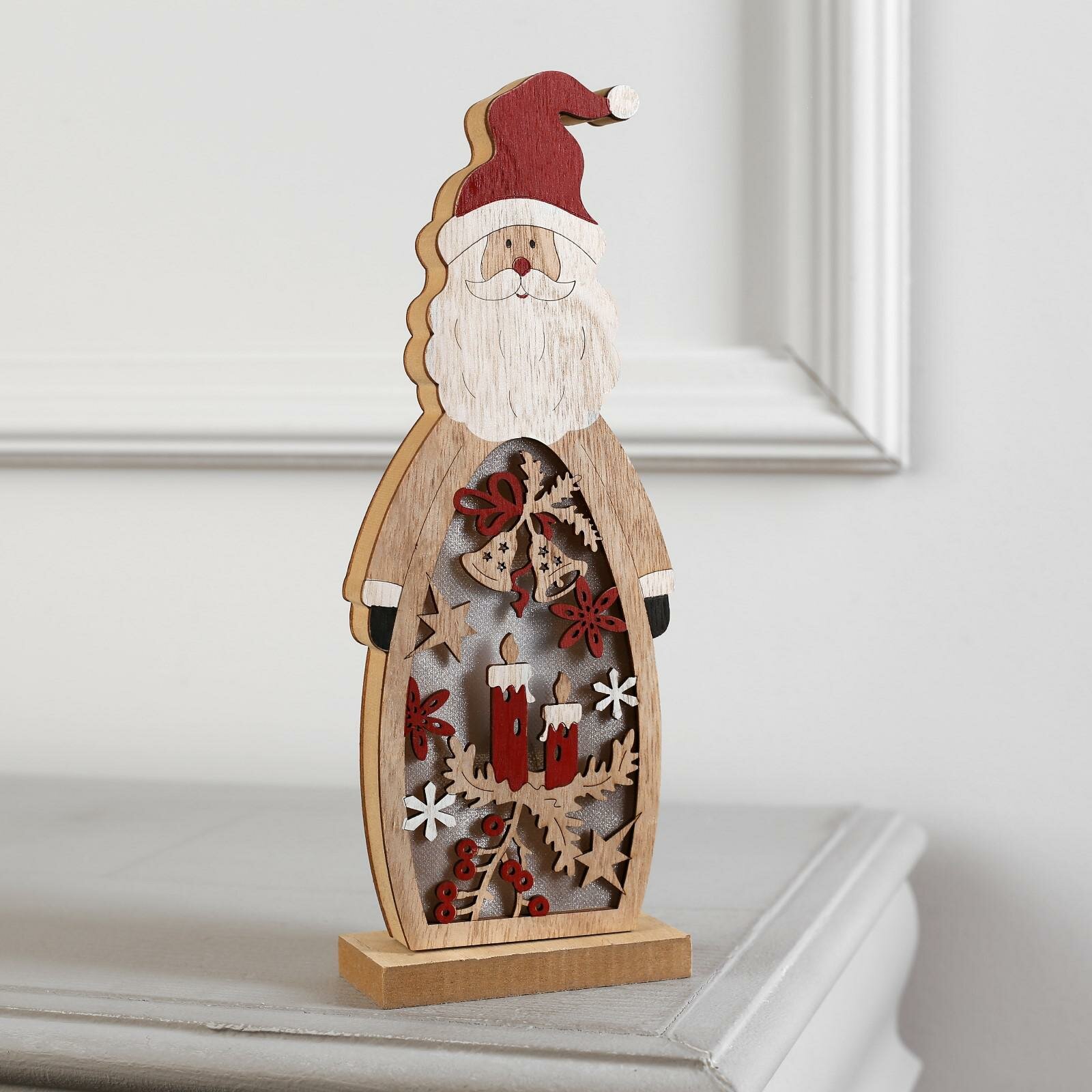 Купить Светодиодная фигура "Дед Мороз" 11 х 28 х 5 см, дерево, батарейки АААх2 (не в комплекте), свечение теплое белое