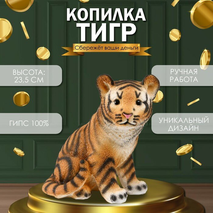 Копилка "Тигр Рыжий" Высота 23,5 см, ширина 16 см, длина 23 см. интересное: