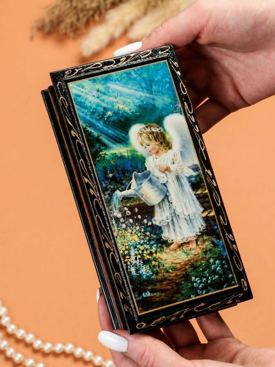 Шкатулка - купюрница ТероПром 2663992 «Ангел с лейкой», 8,5×17 см, лаковая миниатюра