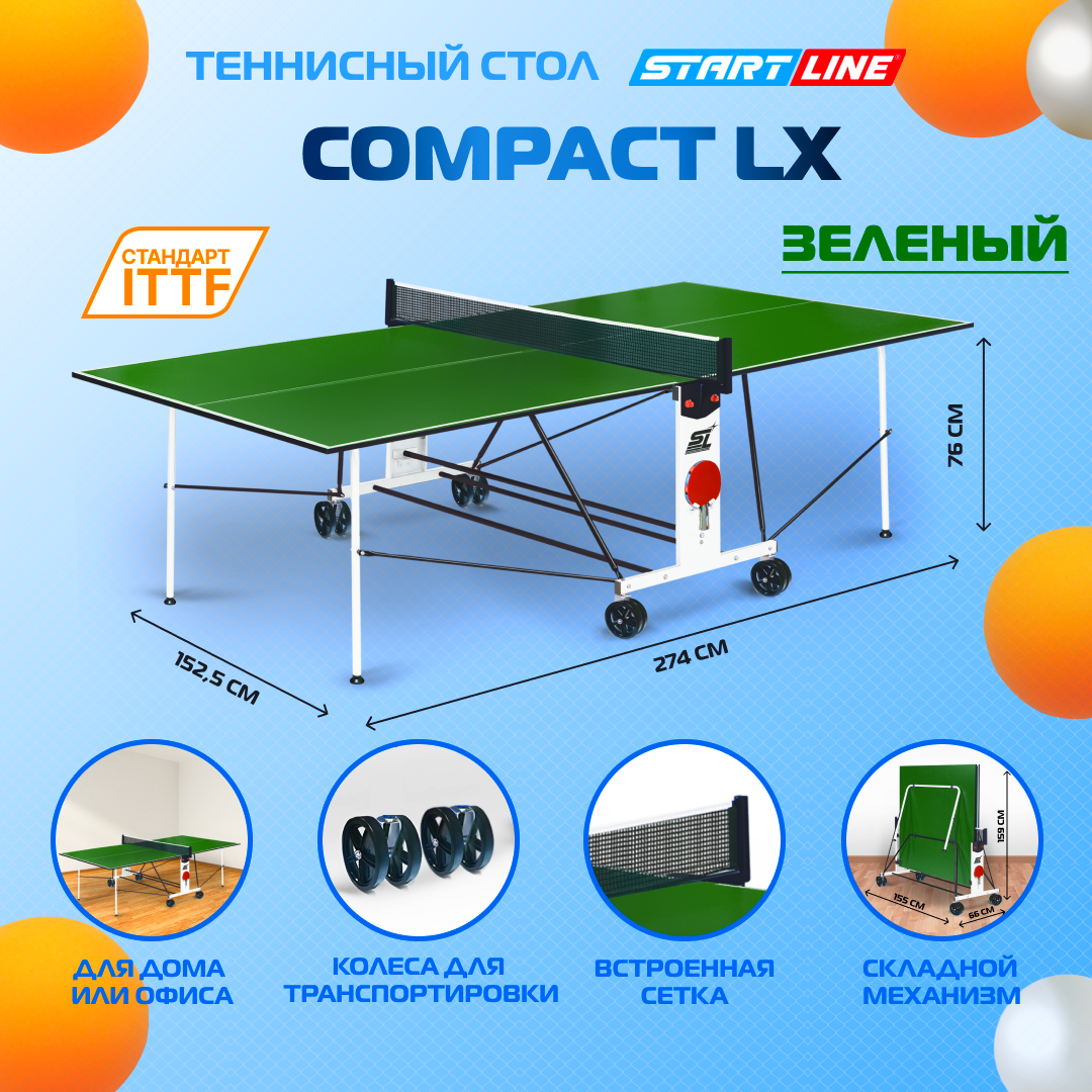Теннисный стол START LINE *COMPACT LX с сеткой Green б/к