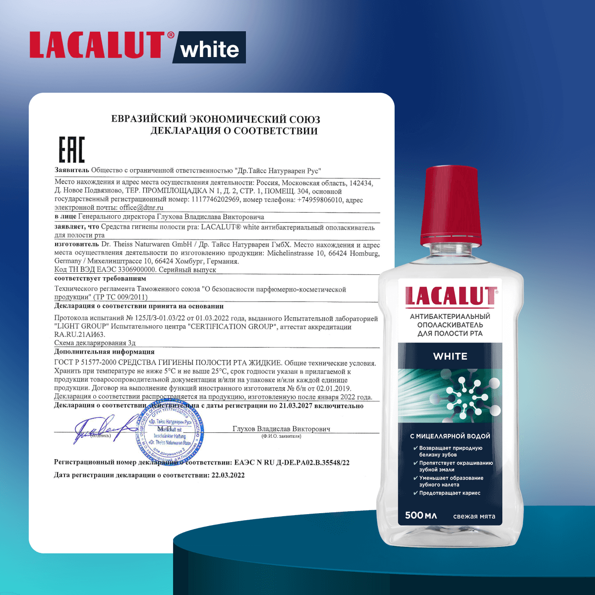 Ополаскиватель для полости рта LACALUT White антибактериальный, 500 мл