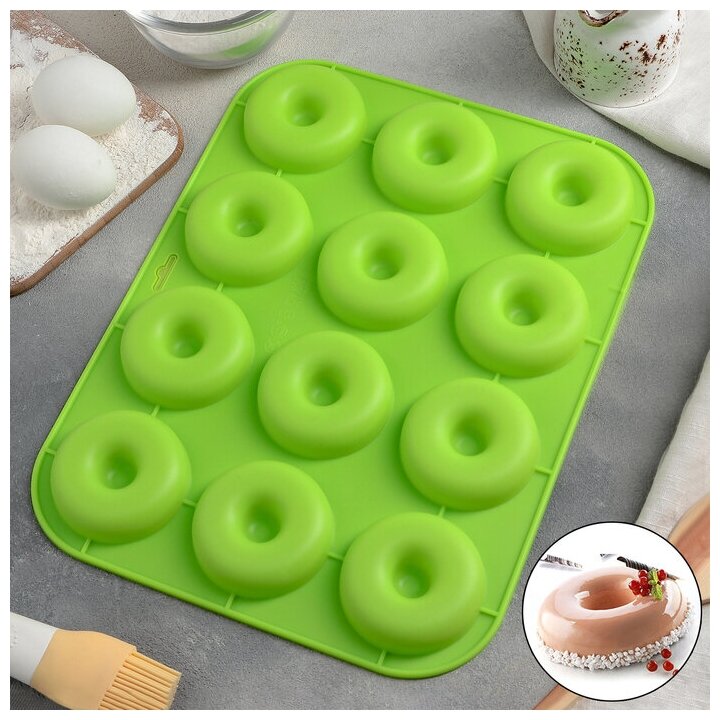 Форма силиконовая для выпечки Доляна «Пончики», 33×25 см, 12 ячеек, d=6,8 см, цвет микс (арт. 3142303) интересное:
