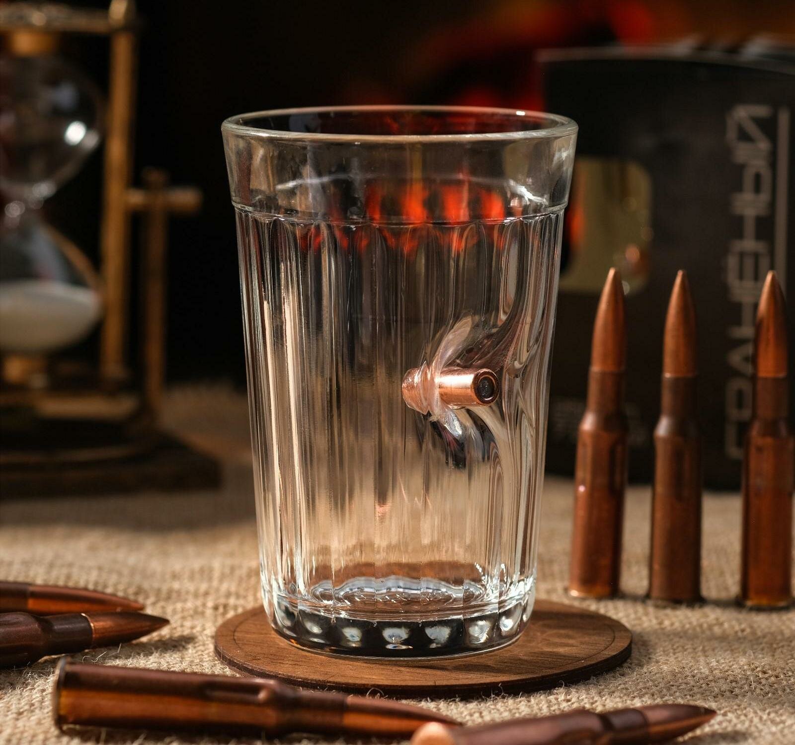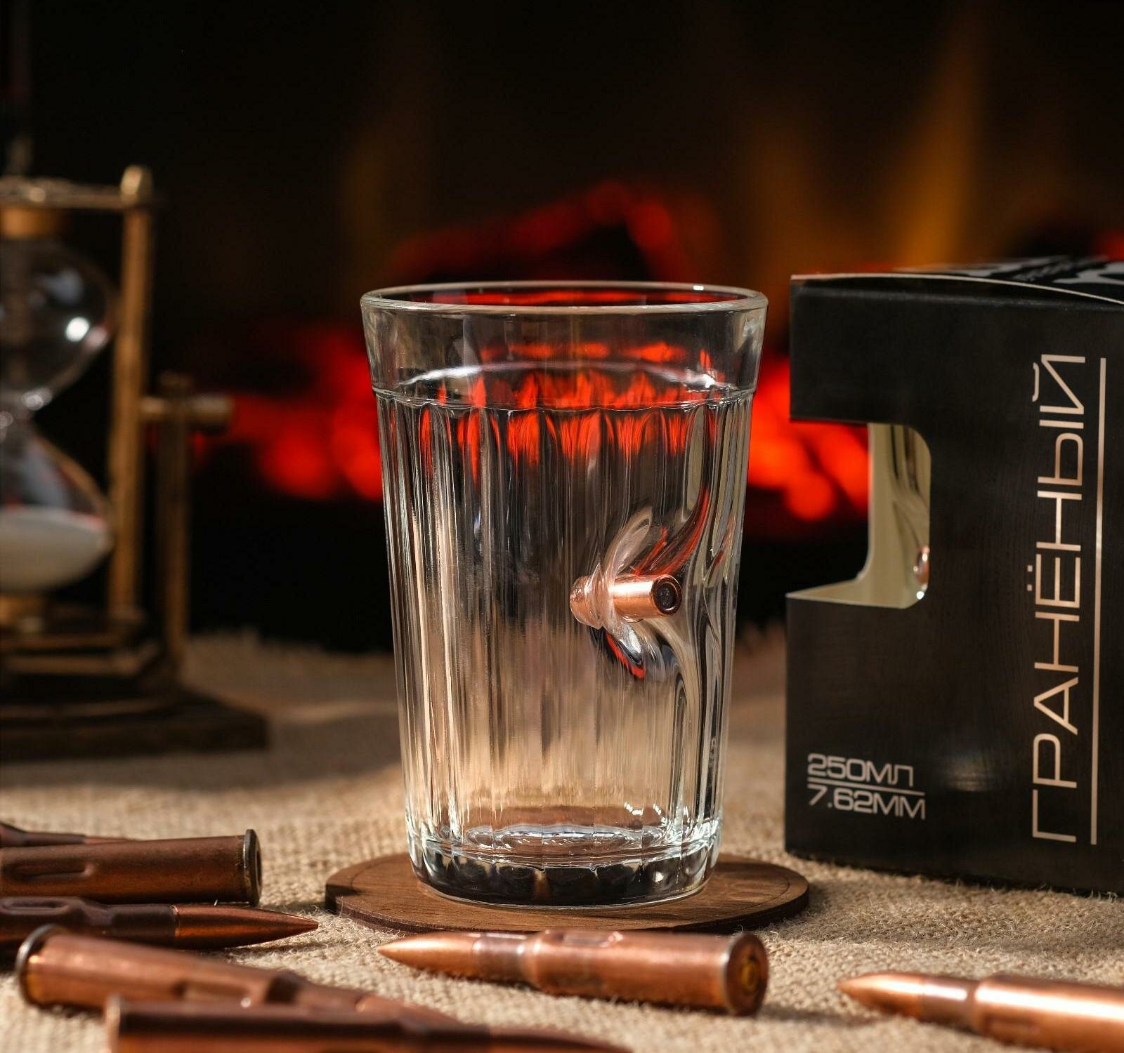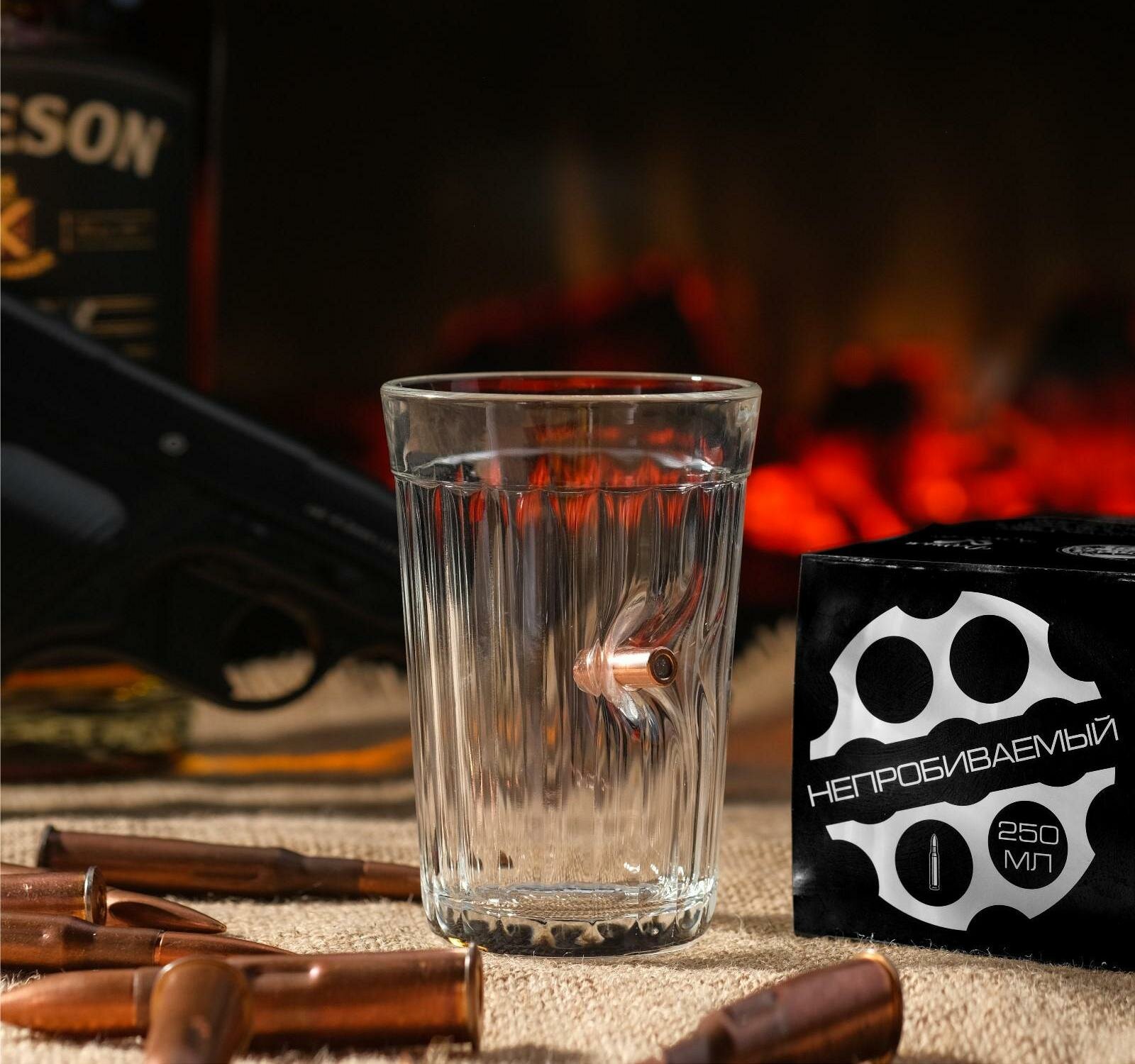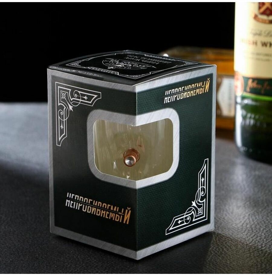 Стакан граненый с пулей "Непробиваемый. Характер" интересное: