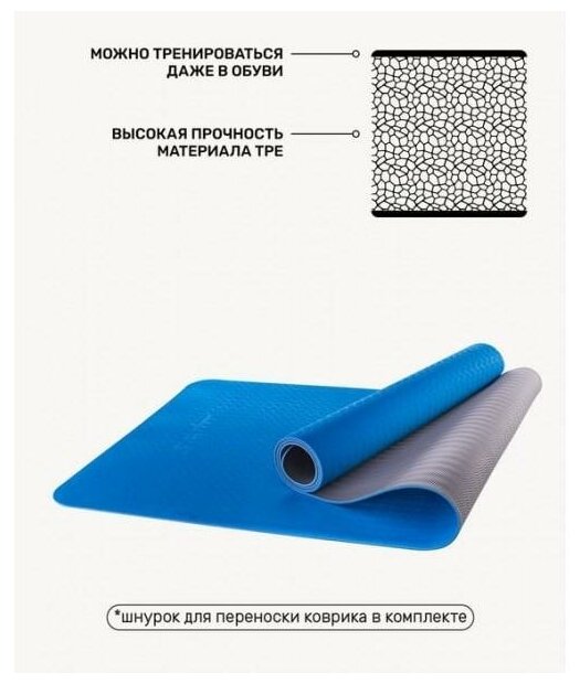 Коврик для йоги STARFIT FM-201 TPE 173x61x0,4 см, синий/серый 1/12