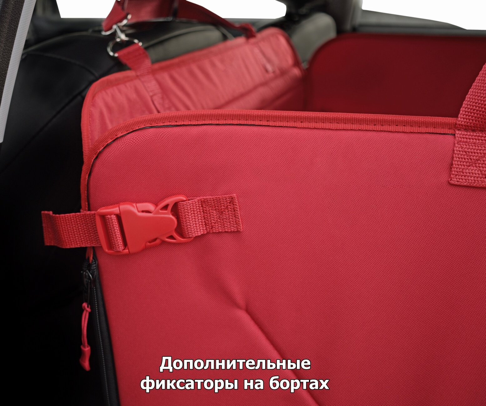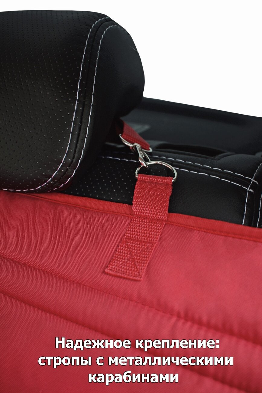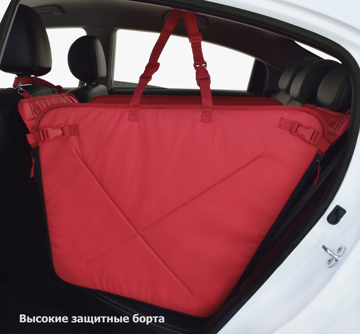 Автогамак для перевозки собак Happy Dog (Хэппи Дог). На 1/3 заднего сиденья. Цвет: красный с черной окантовкой.