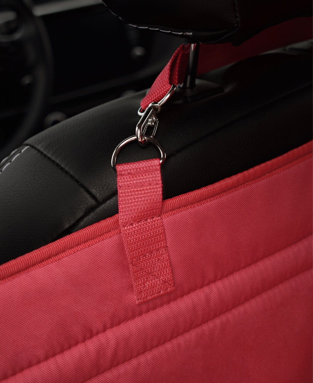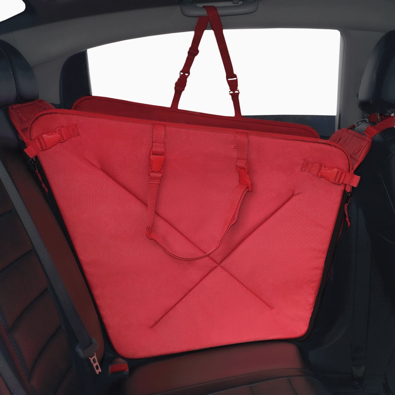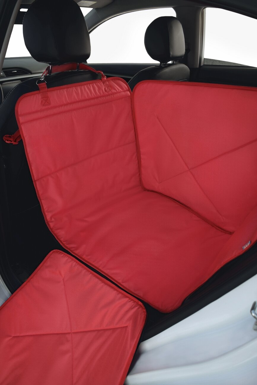 Автогамак для перевозки собак Happy Dog (Хэппи Дог). На 1/3 заднего сиденья. Цвет: красный с черной окантовкой.