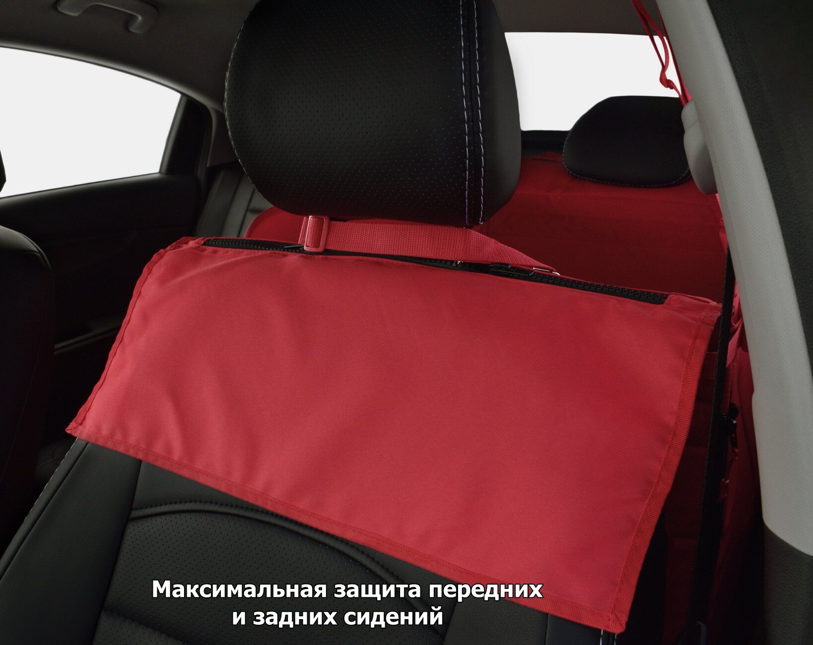 Автогамак для перевозки собак Happy Dog Premium (Хэппи Дог Премиум). На 1/3 заднего сиденья. Цвет: красный с черной окантовкой.