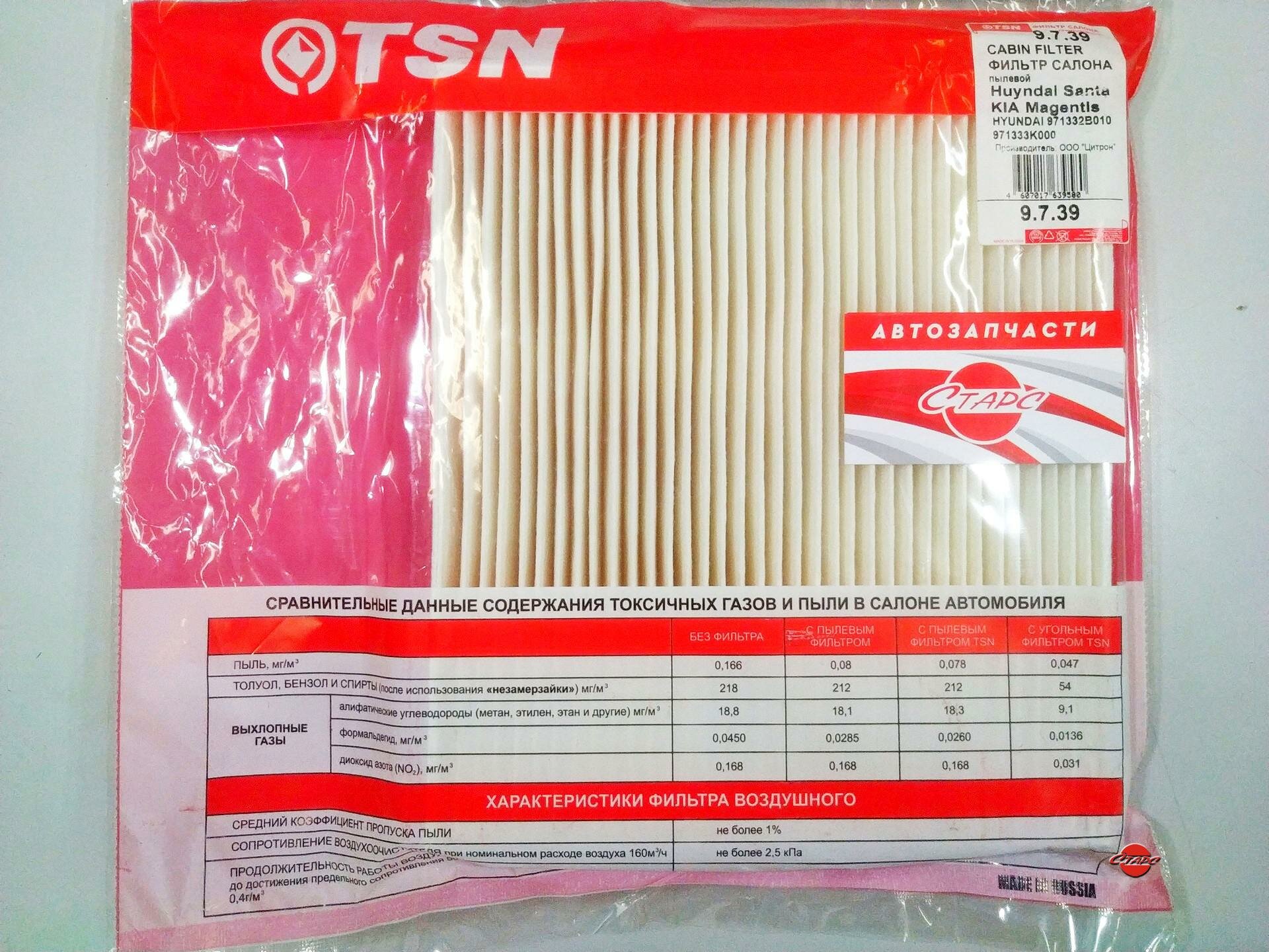 Фильтр салона TSN9720 для автомобилей Nissan Almera, Primera, Tino