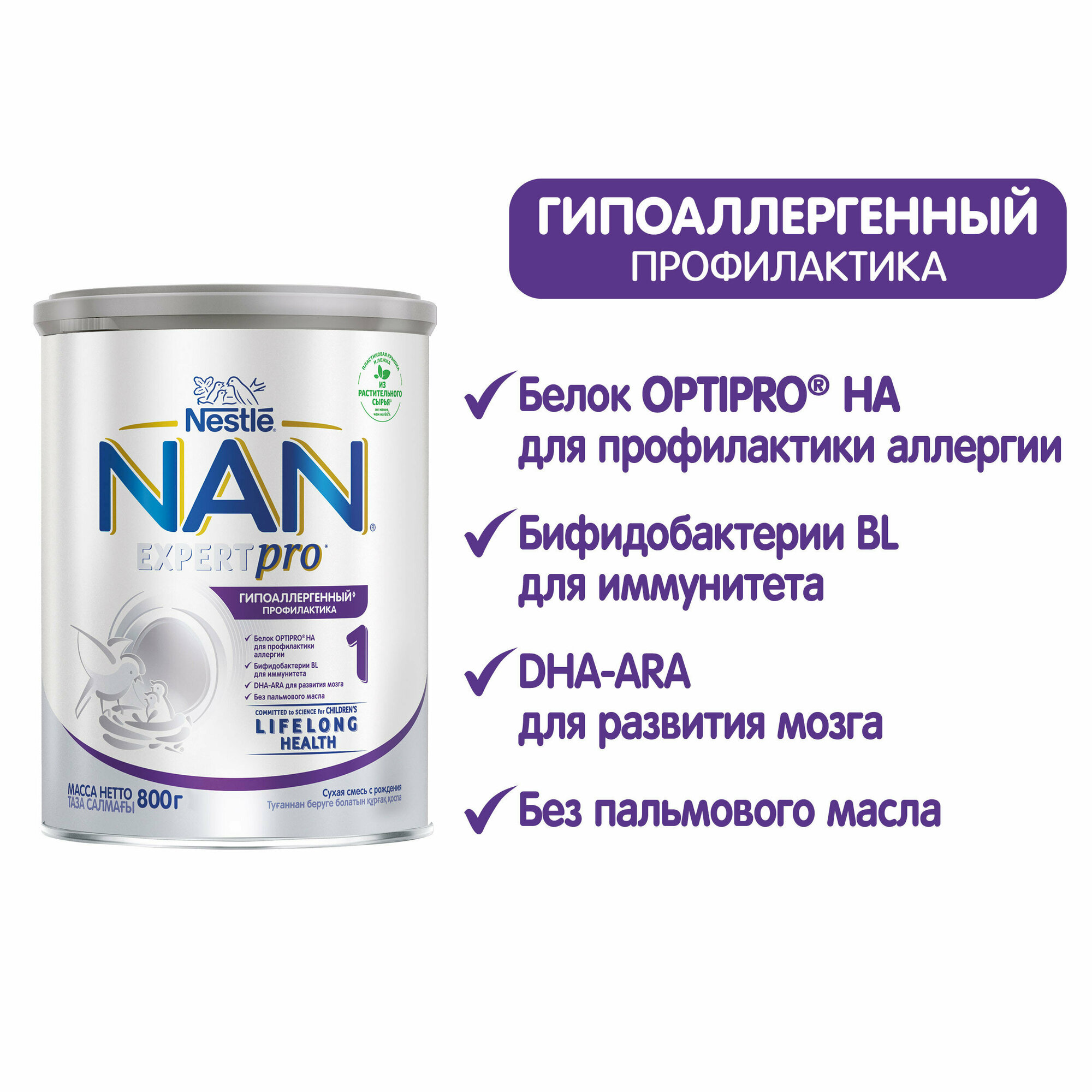 Молочная смесь NAN OPTIPRO HA Гипоаллергенный 1 для профилактики аллергии здоровых детей 800 г с 0 мес