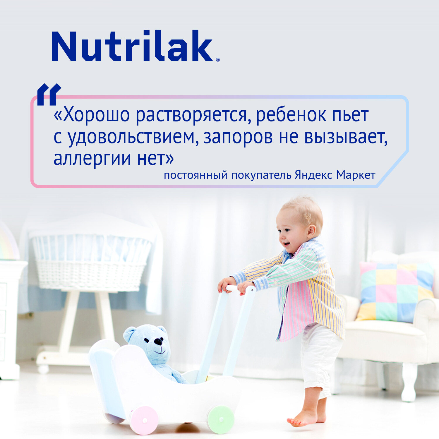 Смесь Нутрилак пьем уже больше года, всё абсолютно устраивает, с животиком проблем не было, аллергии тоже. Начинали с 1, сейчас на ночь пьем 3, дальше уже на 4 будем переходить. Большая упаковка выходит очень выгодно, хватает надолго. Вкусная, дочь пьёт молочко с удовольствием