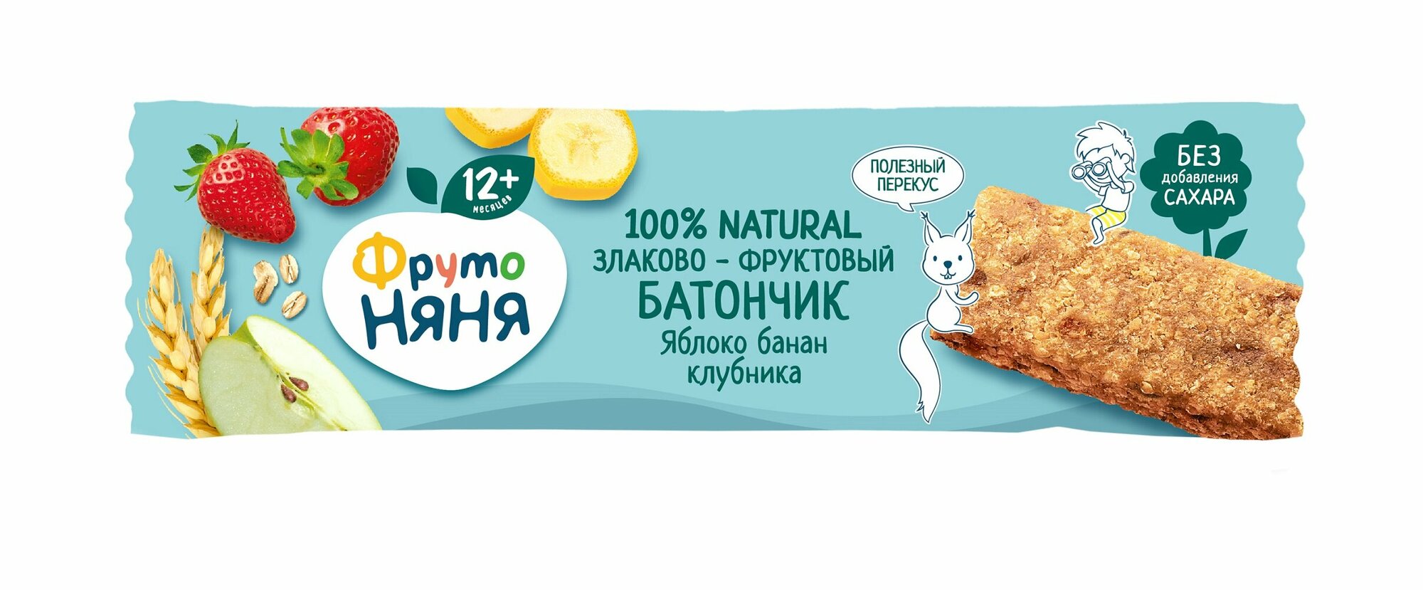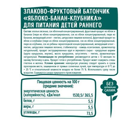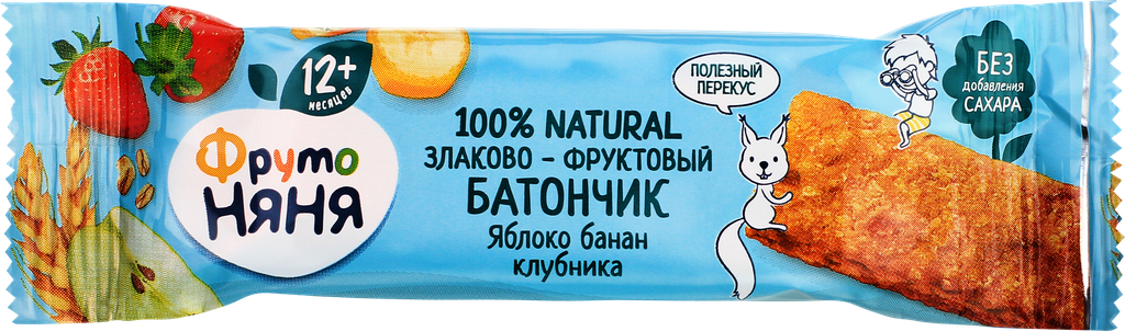 Батончик фруктово-злаковый фрутоняня Яблоко, банан, клубника, с 12 месяцев, 25г интересное: