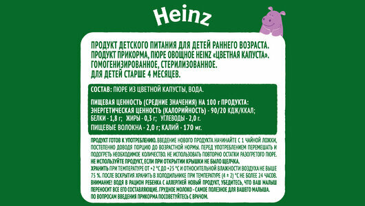 Пюре овощное HEINZ Natural Цветная капуста, с 4 месяцев, 80г интересное: