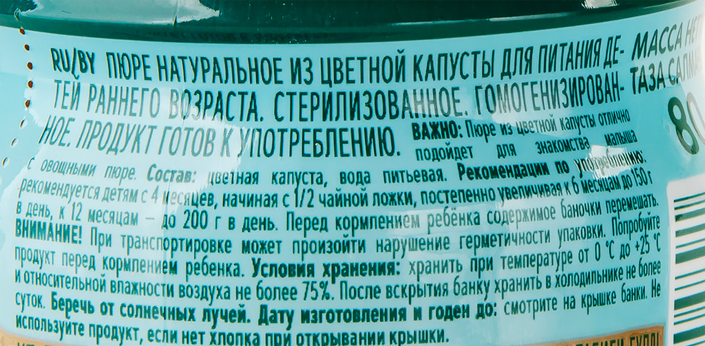 | Плюсы: | Натуральный состав (только цветная капуста и вода). Не вызывает аллергию. Без добавления соли, крахмала, красителей и консервантов. Однородная консистенция и достаточно густая. Приемлемая цена. |