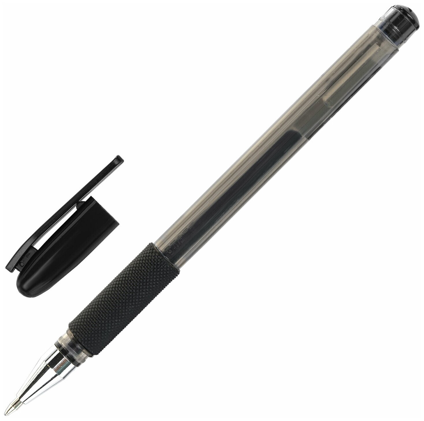 Ручка гелевая с грипом STAFF "Basic", черная, корпус тонированный, узел 0.5 мм, линия письма 0.35 мм, 143677