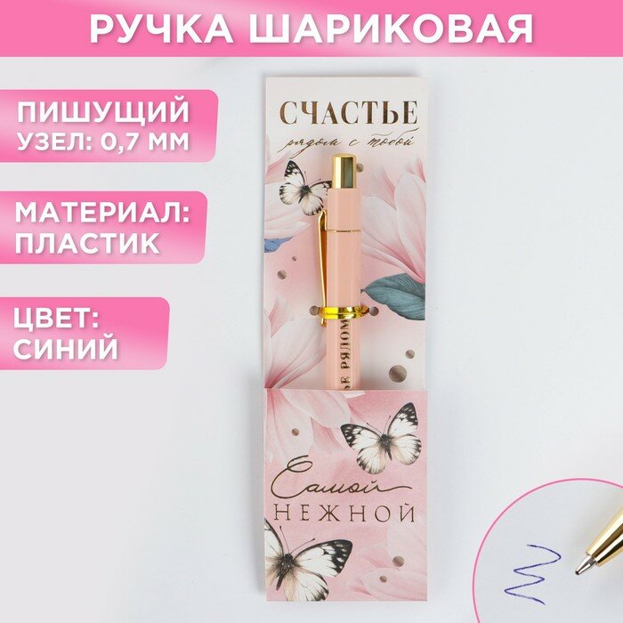 Ручка шариковая подарочная «Самой нежной», с тиснением на корпусе, синяя паста, 0,7 мм интересное: