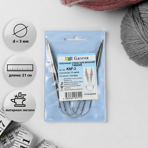Купить Спицы GAMMA чулочные гибкие KNF-3 сталь d 3.0 мм 21 см 3 шт