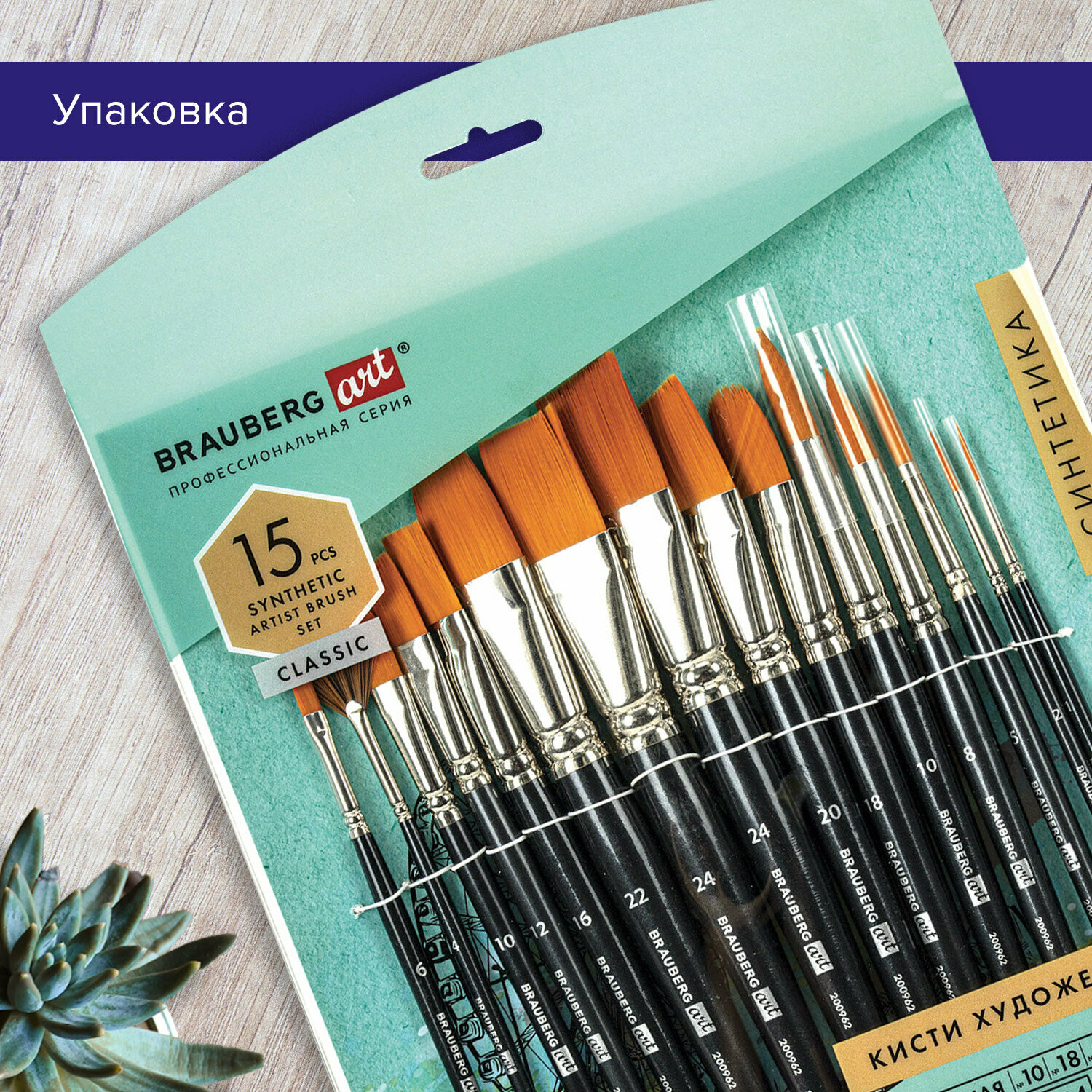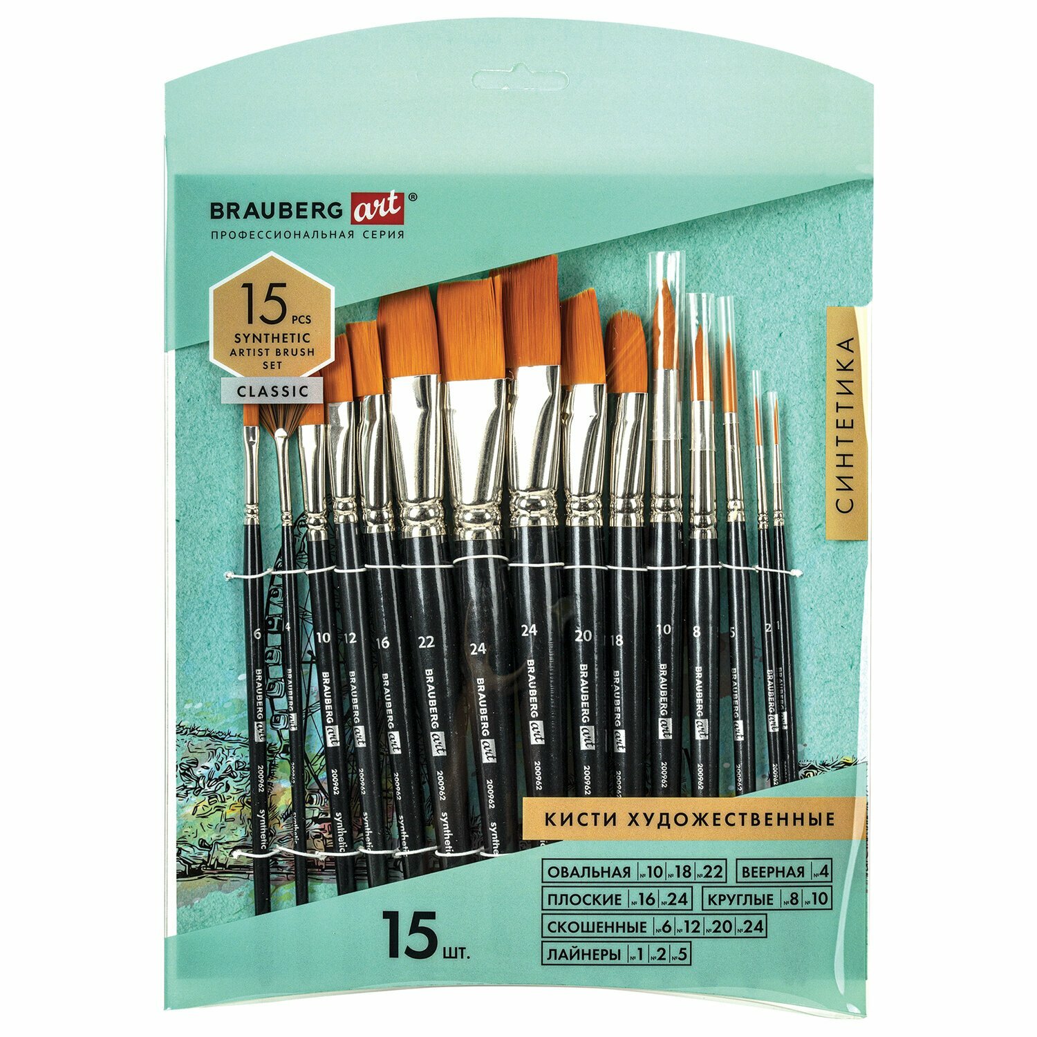 Кисти художественные набор 15 шт., синтетика, BRAUBERG ART CLASSIC, 200962