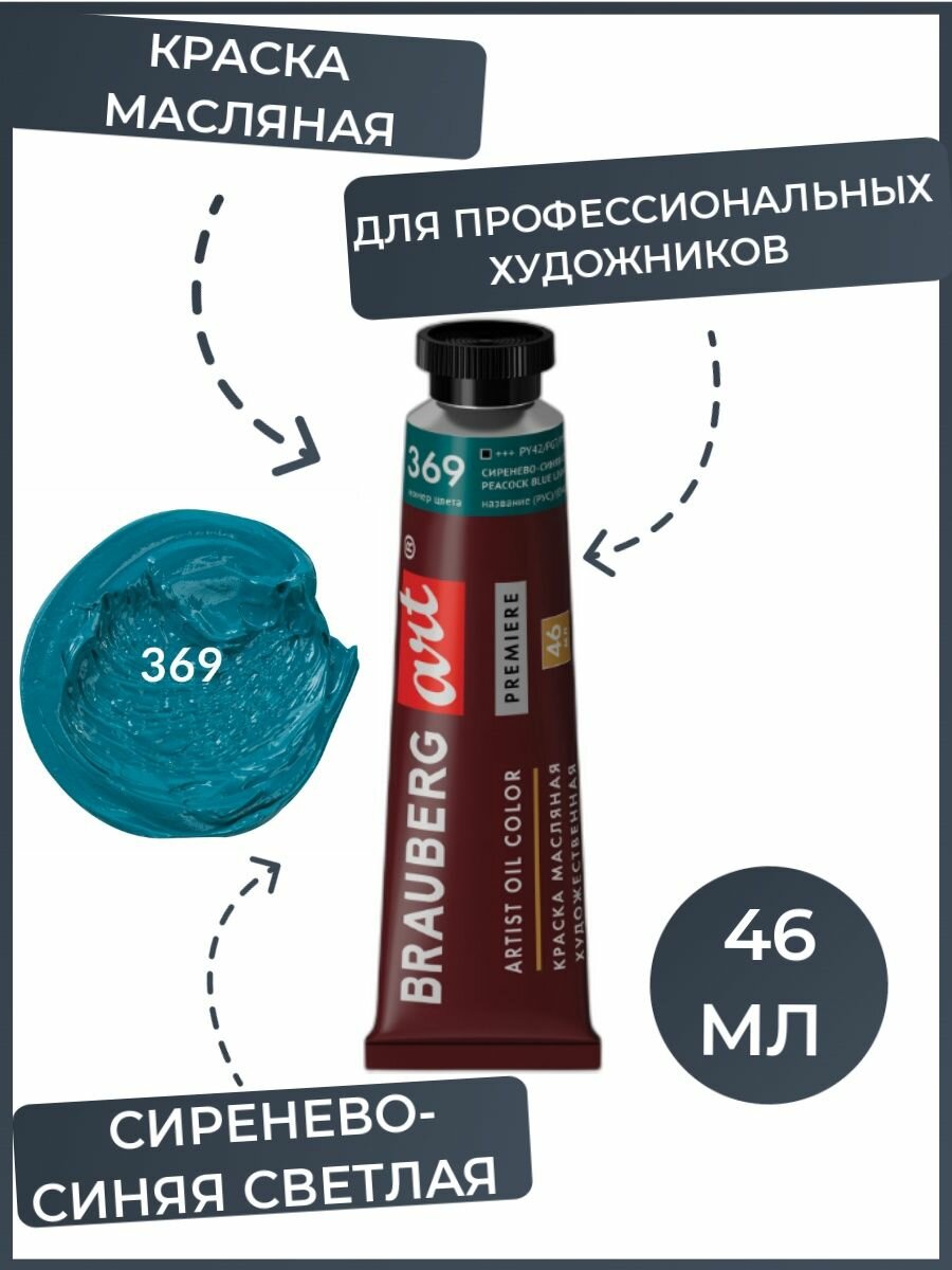 Краска масляная художественная BRAUBERG ART PREMIERE, 46 мл, проф серия, сиренево-синяя светл 191454