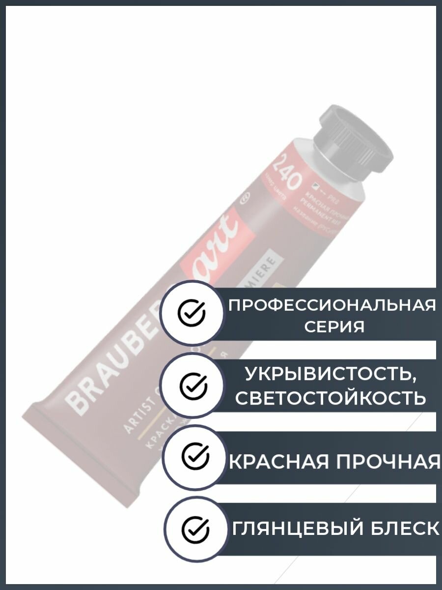 Краска масляная художественная BRAUBERG ART PREMIERE, 46 мл, проф. серия, красная прочная, 191449