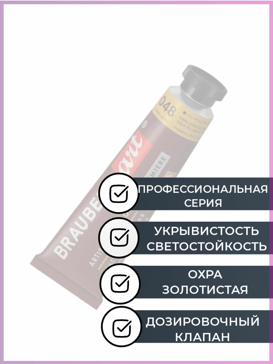 СохранитьКраска масляная художественная BRAUBERG ART PREMIERE, 46 мл, проф. серия, охра золотистая, 191438 Комплект - 3 шт. интересное: