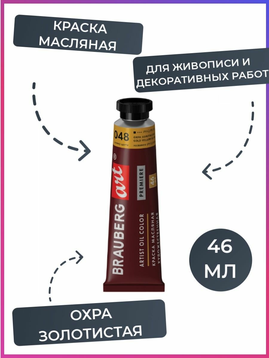 Краска масляная художественная BRAUBERG ART PREMIERE, 46 мл, проф. серия, охра золотистая, 191438