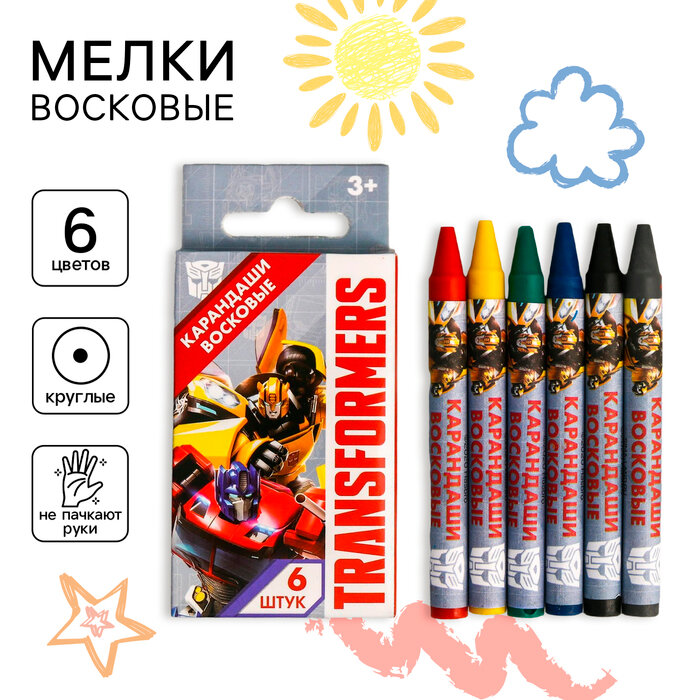 Купить Восковые карандаши, набор 6 цветов, высота 8 см, диаметр 0.8 см, Трансформеры