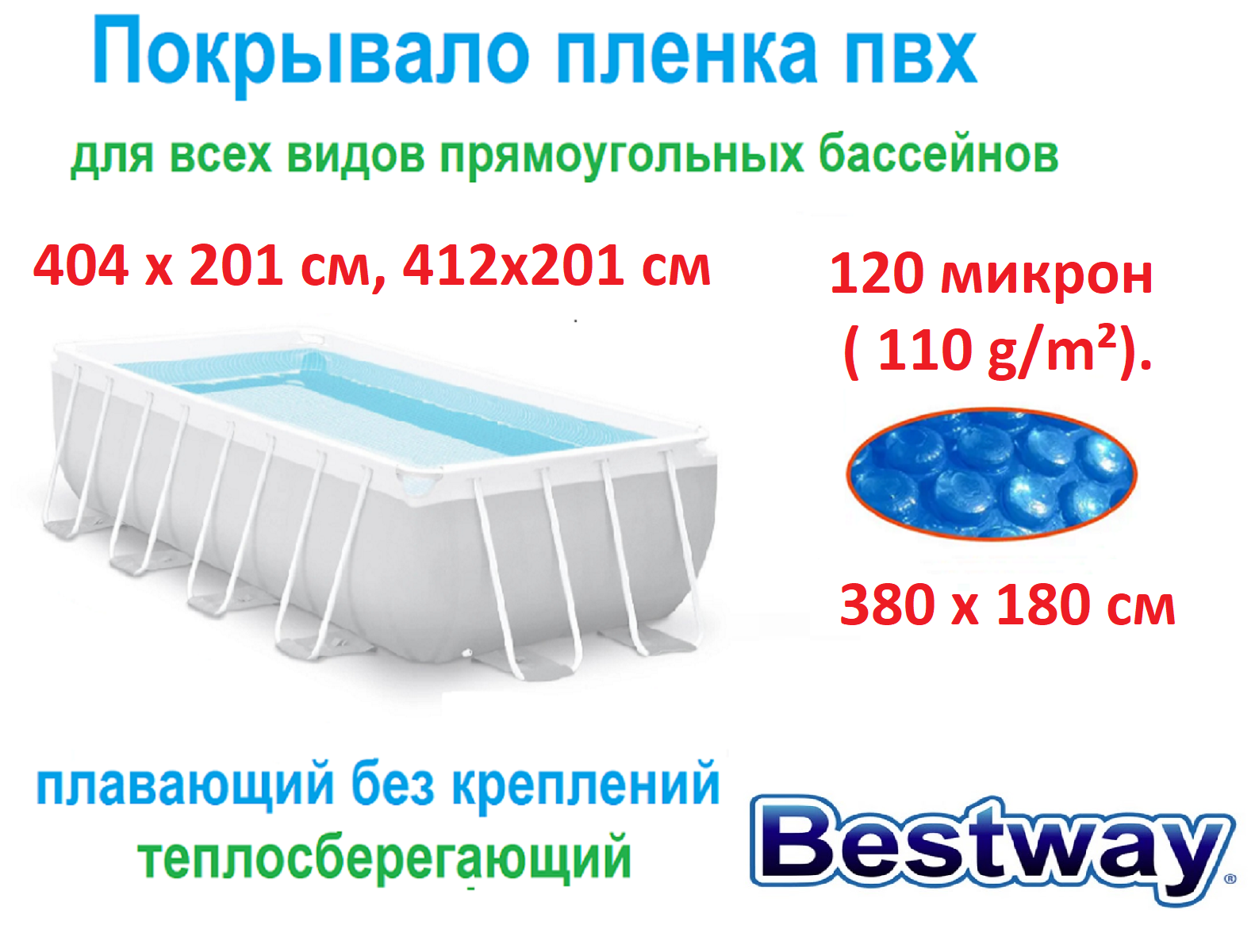 Ниже Вы можете прочитать отзывы на Покрывало - тент пленка для бассейна Bestway Solar Pool Cover 412 х 201 см, 404 х 201 см 58240, ознакомится с подробными характеристиками, посмотреть интересные обзоры и фотографии на Покрывало - тент пленка для бассейна Bestway Solar Pool Cover 412 х 201 см, 404 х 201 см 58240.