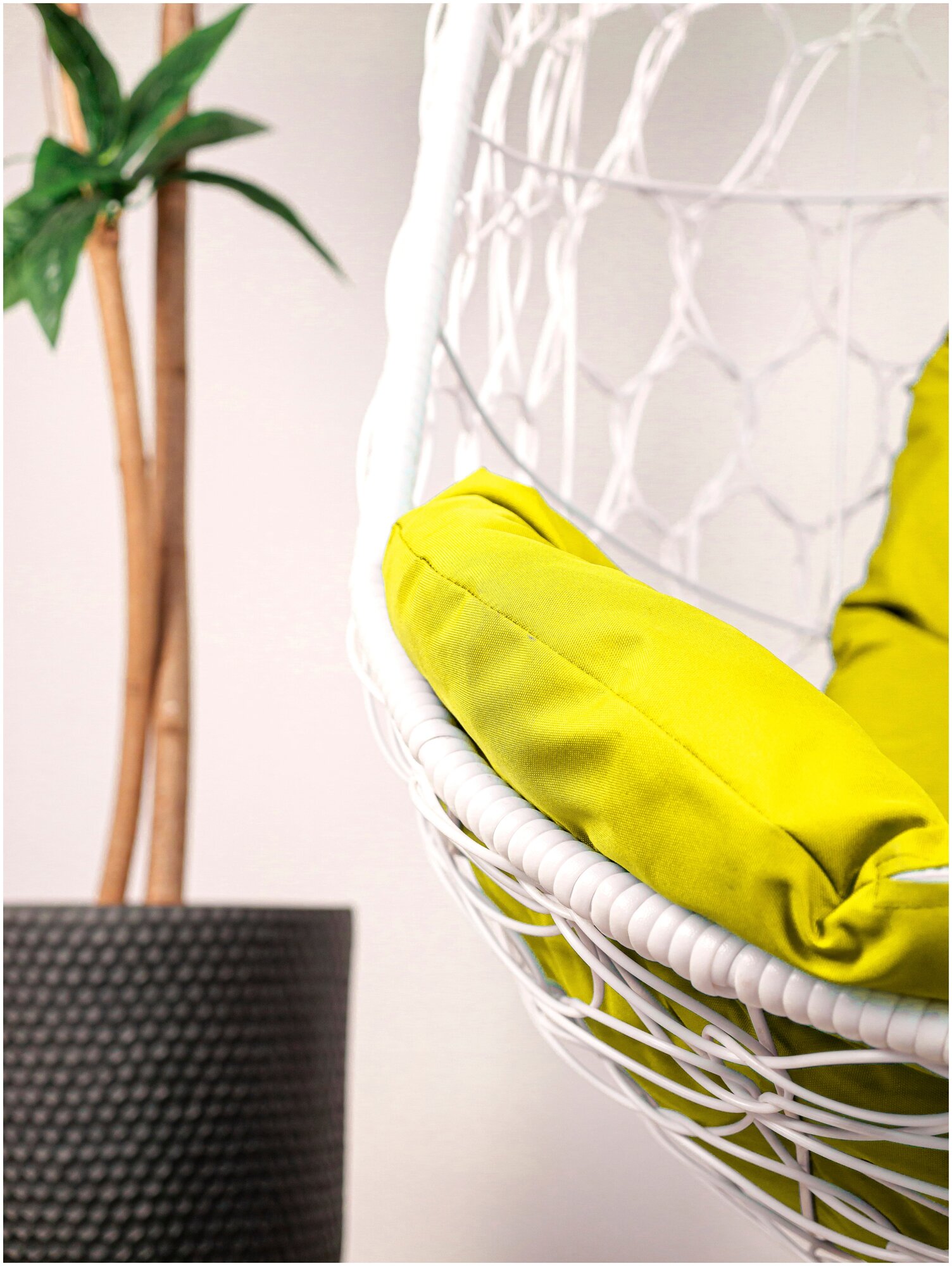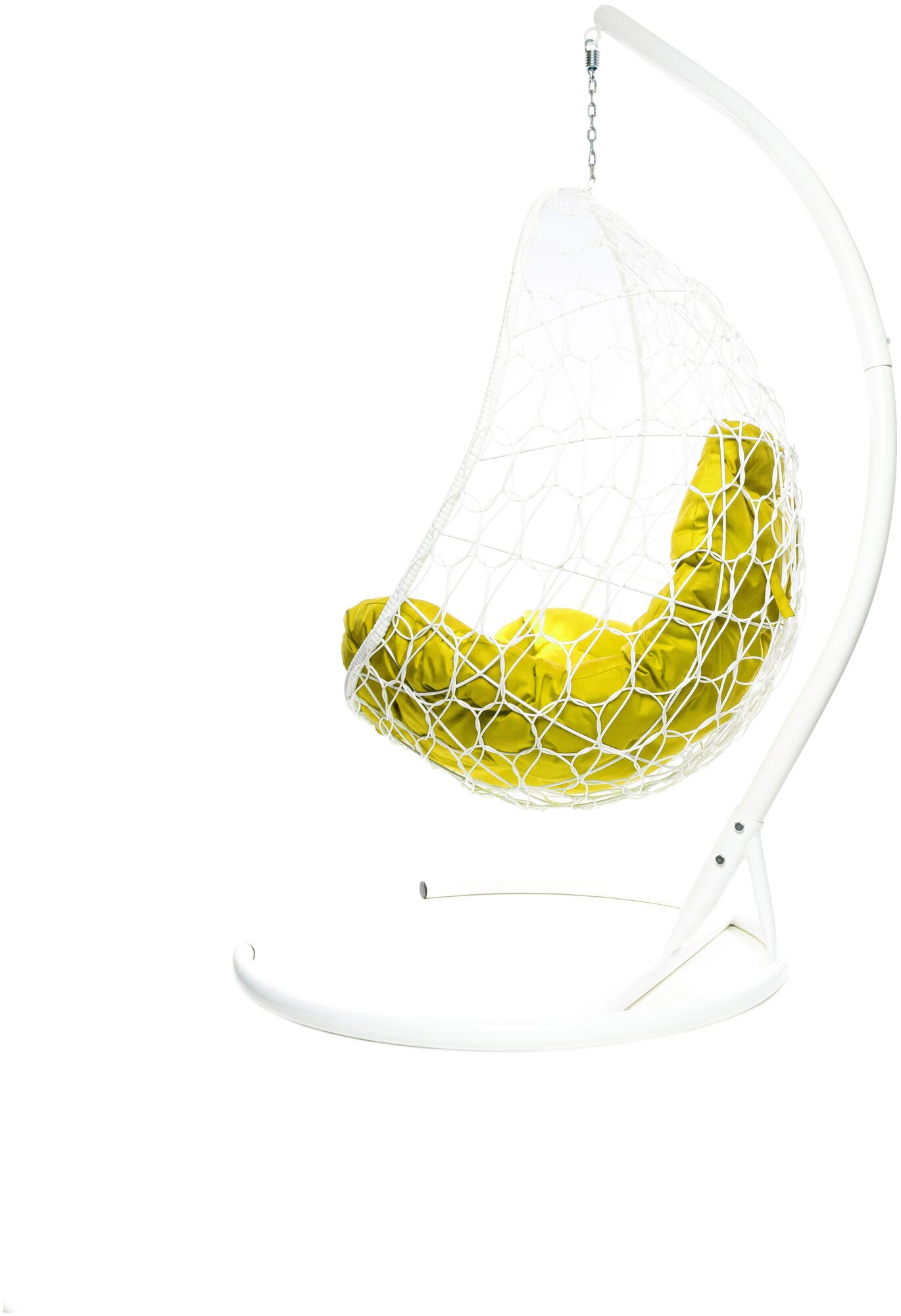 Подвесное кресло с ротангом "Овал" белое с желтой подушкой 830х700х1190 M-Group