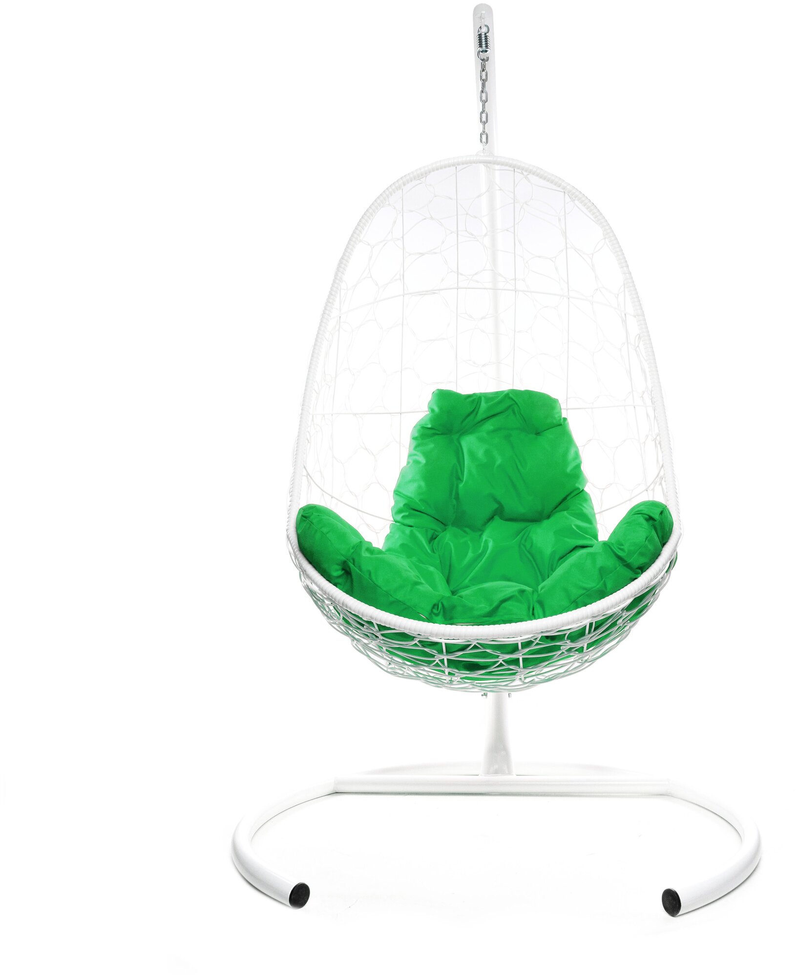 Подвесное кресло M-Group "Овал" с ротангом Белый/ подушка Зеленая
