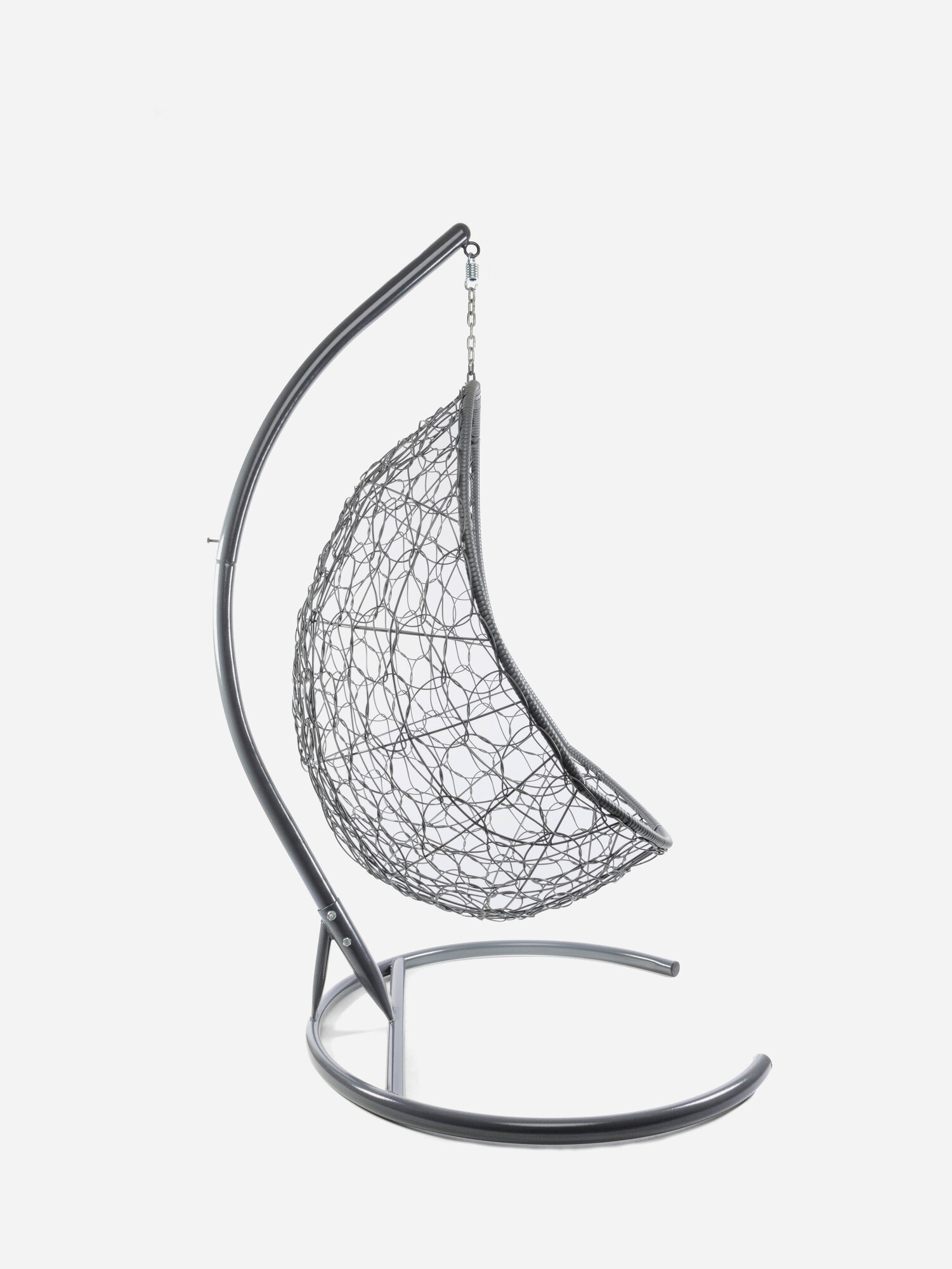 Подвесное кресло овал с ротангом чёрное, серая подушка