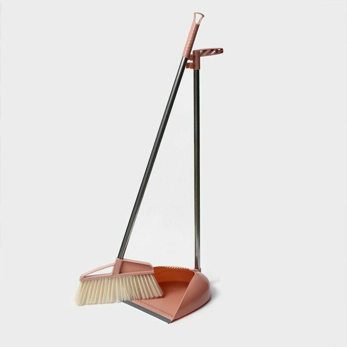 Купить Щётка с совком Доляна: щётка 23×88 см, совок 26×26×73 см, цвет бежевый